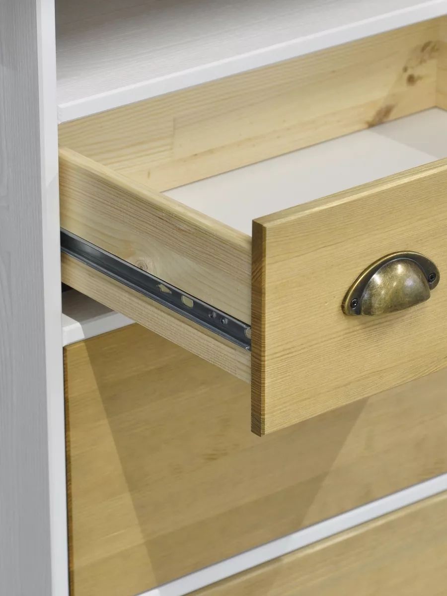 - Разноразмерные ящики: В комоде представлены два типа ящиков: 2 неглубоких для мелких предметов и 4 глубоких для более крупных вещей, что обеспечивает удобную организацию хранения. В глубоких ящиках удобно хранить одежду и текстиль, что делает комод удобным в применении в качестве шкафа комода в спальне.