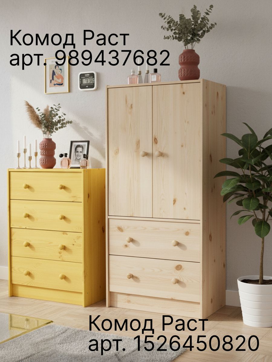 Комод Раст – это современное сочетание стиля и функциональности. Минималистичный дизайн и просторные ящики делают его идеальным выбором для хранения вещей и создания стильного интерьера. Стильный комод из массива сосны отлично впишется в комнаты современного и скандинавского стиля, бохо, лофт, минимализм. Подчеркните уникальность и создайте свое уютное домашнее пространство с нашей мебелью. Мы заботимся о Вашем удобстве!