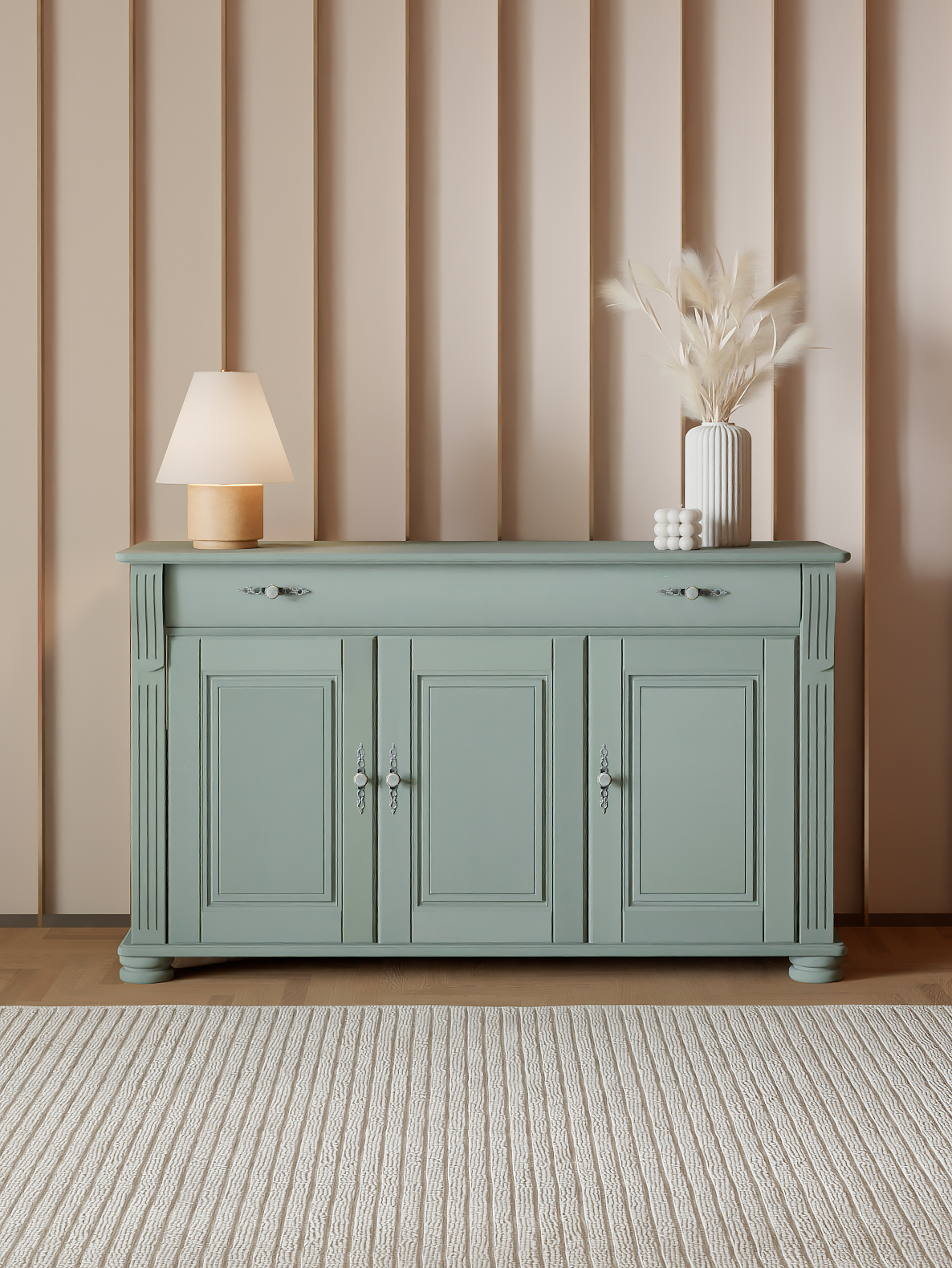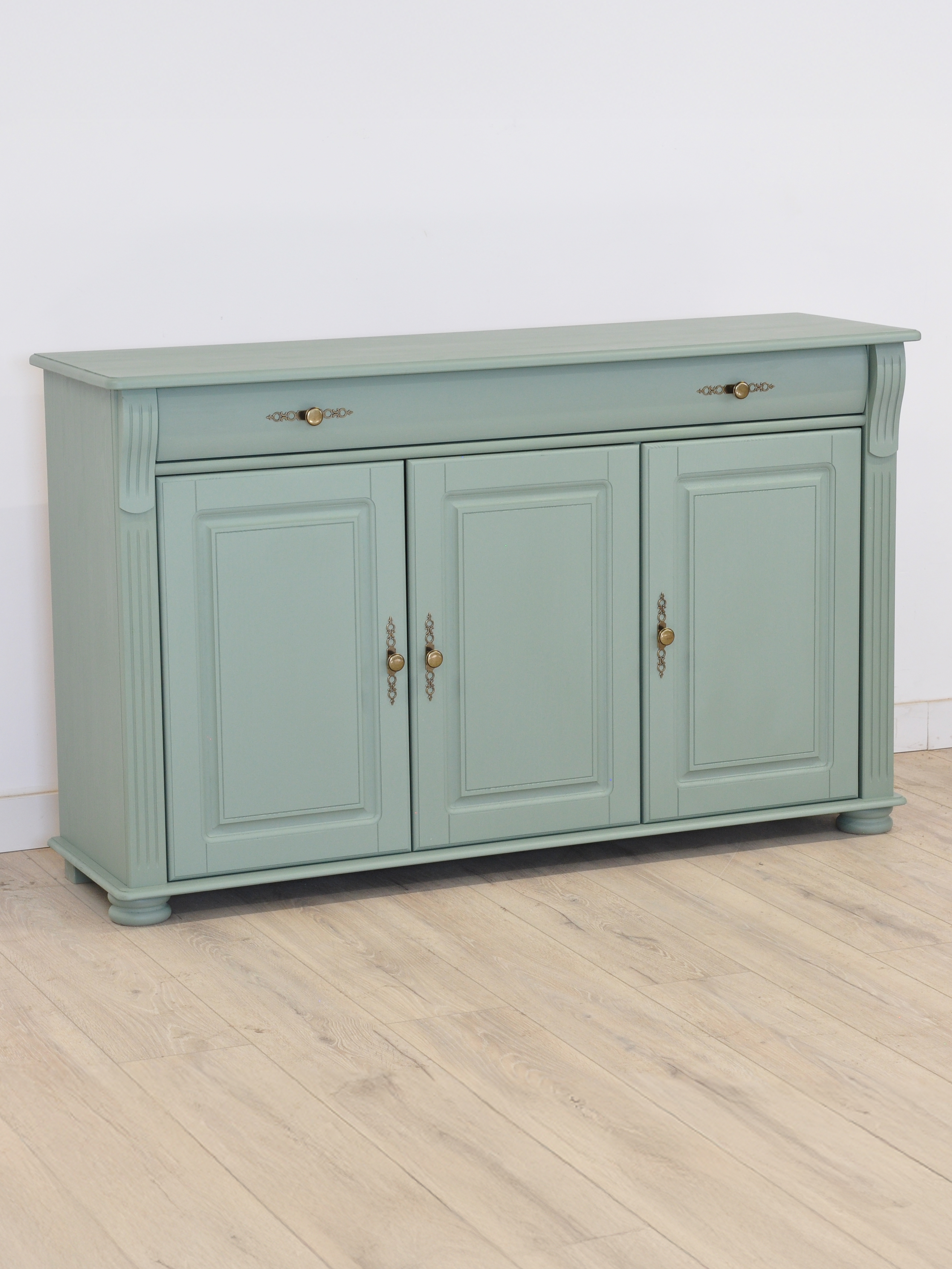 Добавьте элегантности и уюта в ваш интерьер с комодом "Сюзанна"! Изготовленный из натурального массива сосны, этот комод сочетает в себе классический дизайн и практичность. Мягкий эвкалиптовый оттенок и изящные латунные ручки с декоративными элементами придают ему утонченный винтажный шарм, который идеально впишется в спальню, гостиную или прихожую.