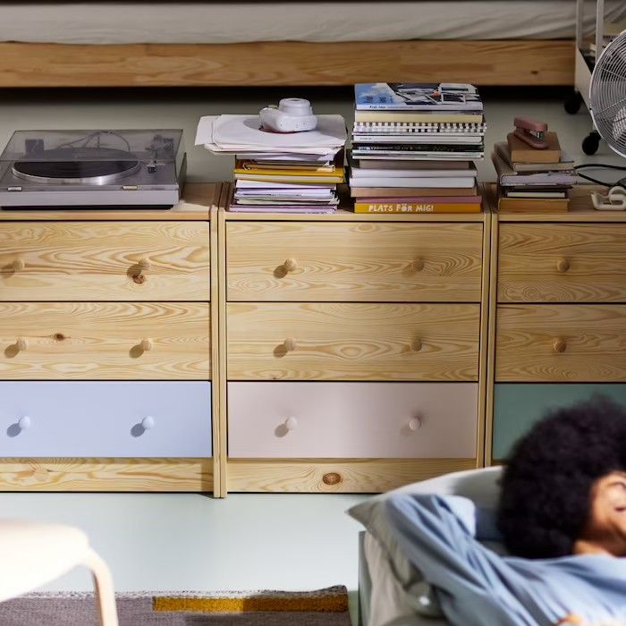 Ящики деревянного комода можно использовать для хранения вещей одного типа или тематически разделить их по назначению. Например, верхние ящики использовать под носки, перчатки и шарфы, средние - под футболки и майки, нижние - под пижамы и домашнюю одежду. В качестве бонуса дополнили комод органайзерами для белья, которые Вы сами сможете настроить под свои нужды.