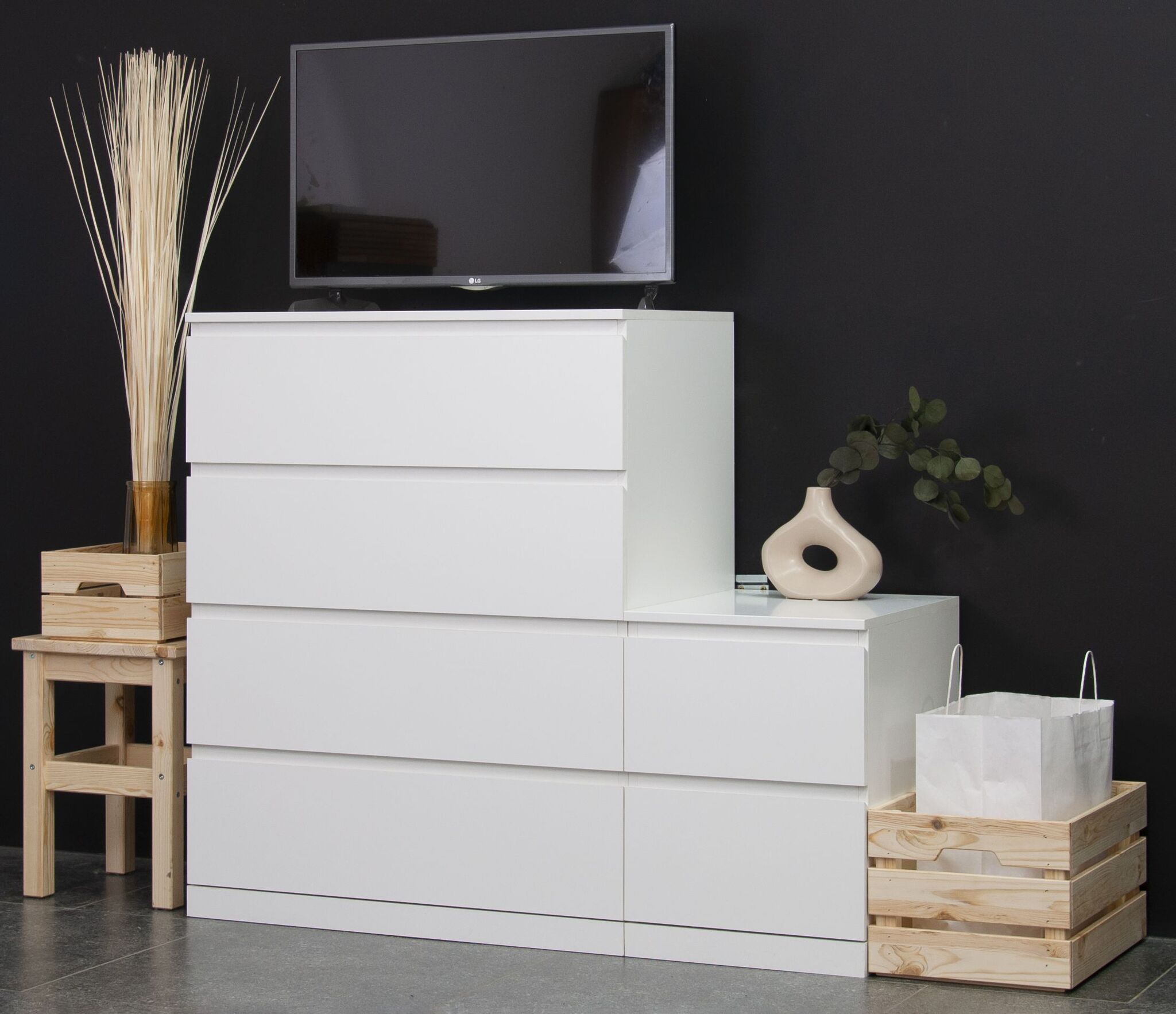 Комод широкий отлично дополнит интерьер спальни, гостиной, детской комнаты, даже балкона или гаража. Его можно использовать для хранения книг, зарядных устройств, косметики, средств личной гигиены, в качестве подставки под комнатные растения и хранения мелочей. В детской комнате комод высокий с ящиками пригодится для хранения игрушек, школьных принадлежностей и вещей ребенка, в офисе – для хранения канцелярии и документов.