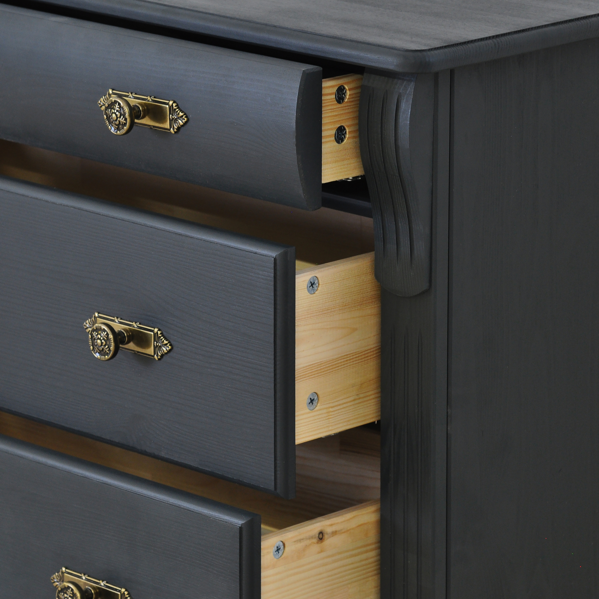 Комод для одежды и вещей Сюзанна выполнен из натурального массива сосны - экологически чистого долговечного материала.