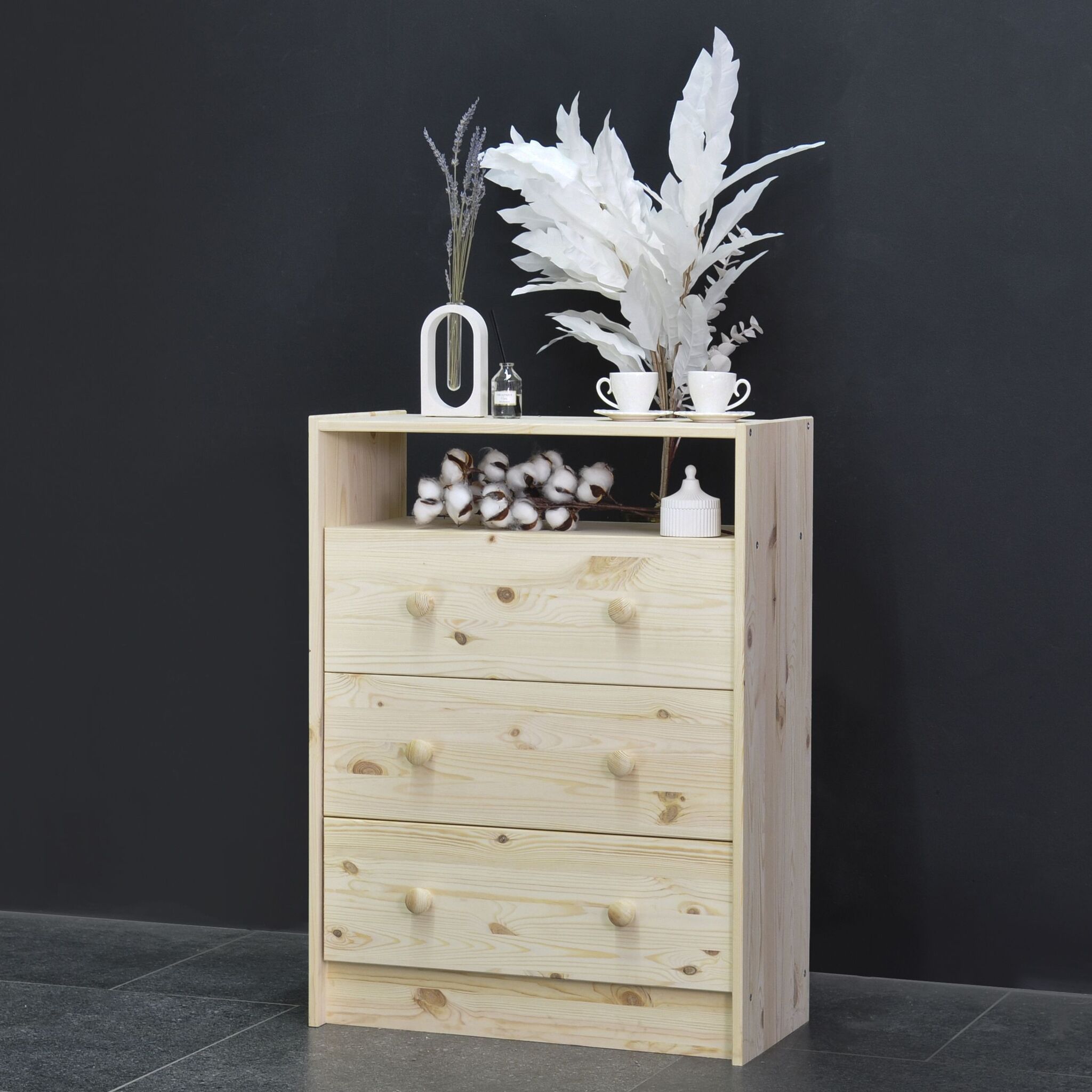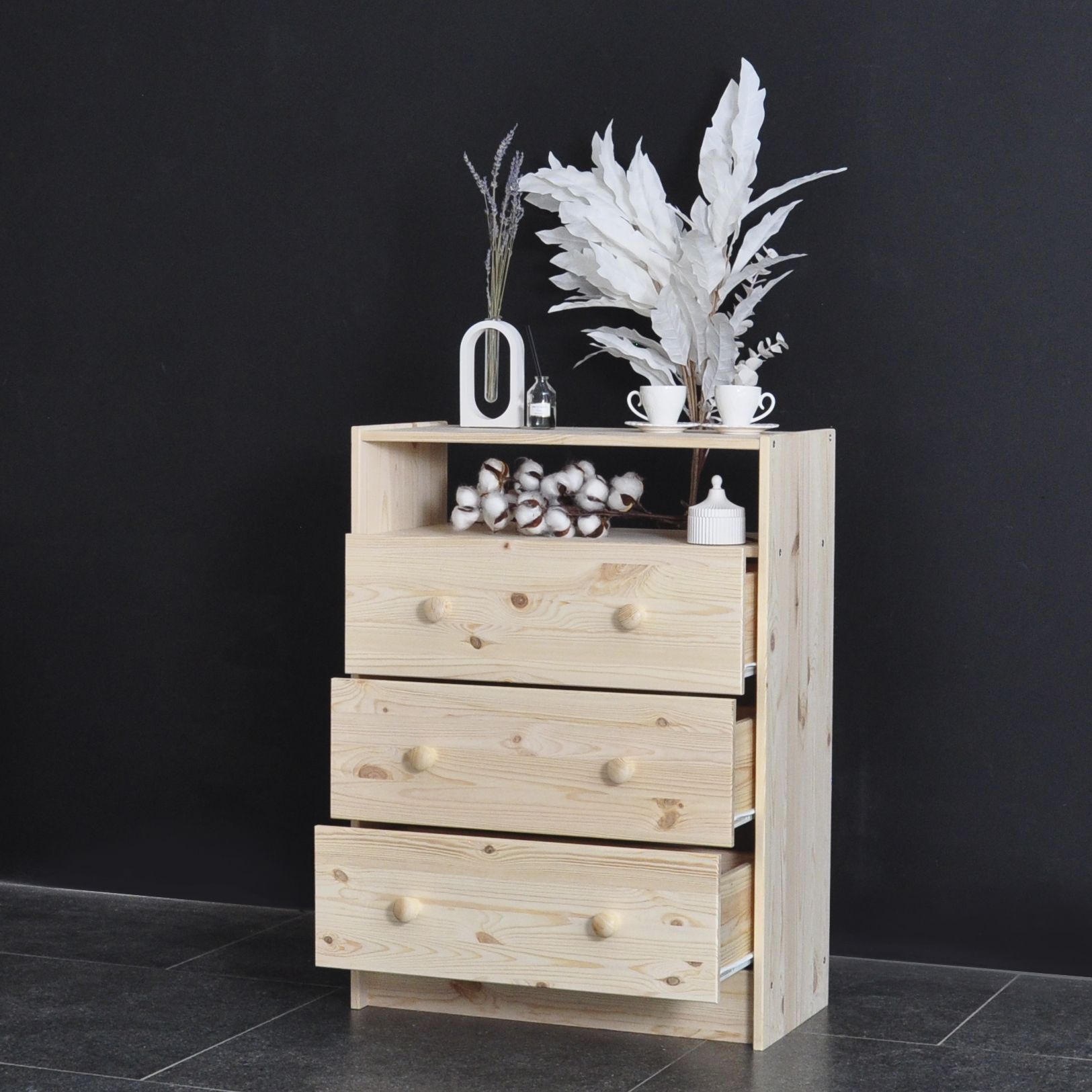 Комод Раст от белорусского производителя Dipriz изготовлен из экологически чистого материала - натурального дерева массива сосны.