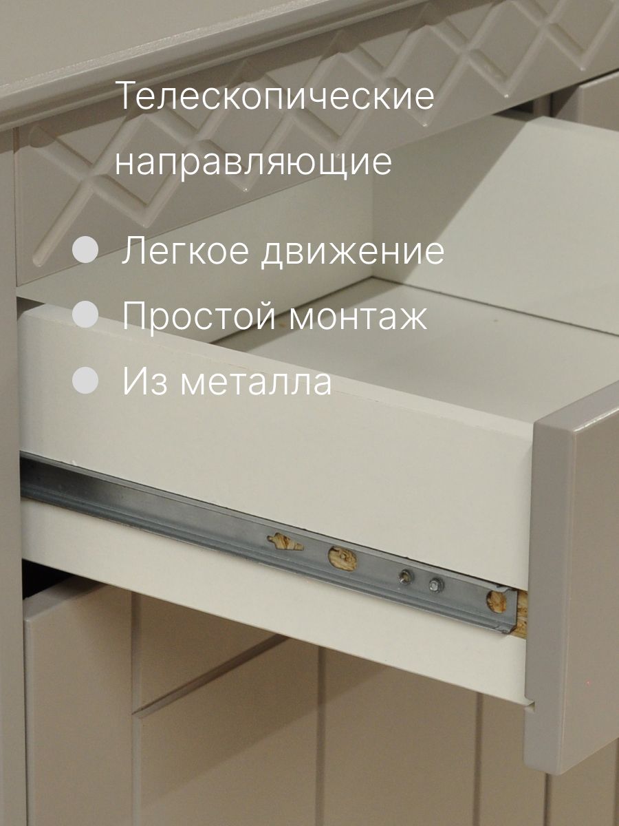- Направляющие: Телескопические, металлические. Обеспечивают надежное и долговечное скольжение.
