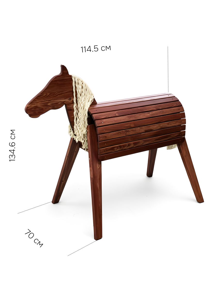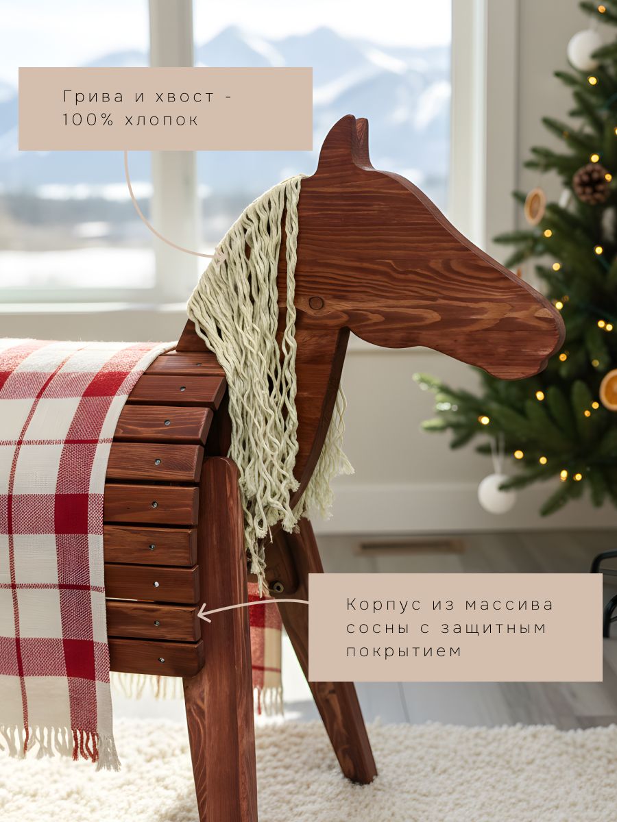 Лошадь Хари — идеальный декоративный предмет для любителей верховой езды, активностей и всех любителей лошадей. Декоративная лошадь высотой спинки 86 см подходит как украшения комнаты, так и для расположения на нем декора. «Хари» также может быть загружен весом до 100 кг. Игровая лошадка специально разработана для возможных активностей на открытом воздухе, чтобы выдерживать трудности использования. Прочная сосновая древесина, из которой изготовлена лошадь Хари, гарантирует долгий срок службы и оптимальную устойчивость к внешним воздействиям. «Хари» также характеризуется особенно стабильной структурой. Благодаря расклешенным ножкам коня, возможно безопасно взобраться на спинку высотой 86 см, а гладкая поверхность и закругленные края всегда обеспечивают безопасное использование. Внешний вид изделия очень детализирован и предлагает множество возможностей. Хлопковую гриву и хвост можно заплести по своему желанию. Таким образом, вы можете украсить лошадку по своему вкусу. Деревянный конь – идеальное сочетание праздничного волшебства и декоративной красоты. Этот конь, изготовленный из качественного дерева, станет любимым украшением в каждой комнате, так и стильным элементом интерьера. Удивительная проработка деталей делает его непременно привлекательным, а его потрясающая прочность обещает долговечность. Независимо от того, представляет ли он воспоминания о далёких конных прогулках, деревянный конь добавит нотку сказочной атмосферы и веселой развлекательности в жизнь каждой семьи. Разработан с любовью и вниманием к деталям, этот декоративный конь порадует всех своим внешним видом, становясь прекрасным подарком для любого случая.