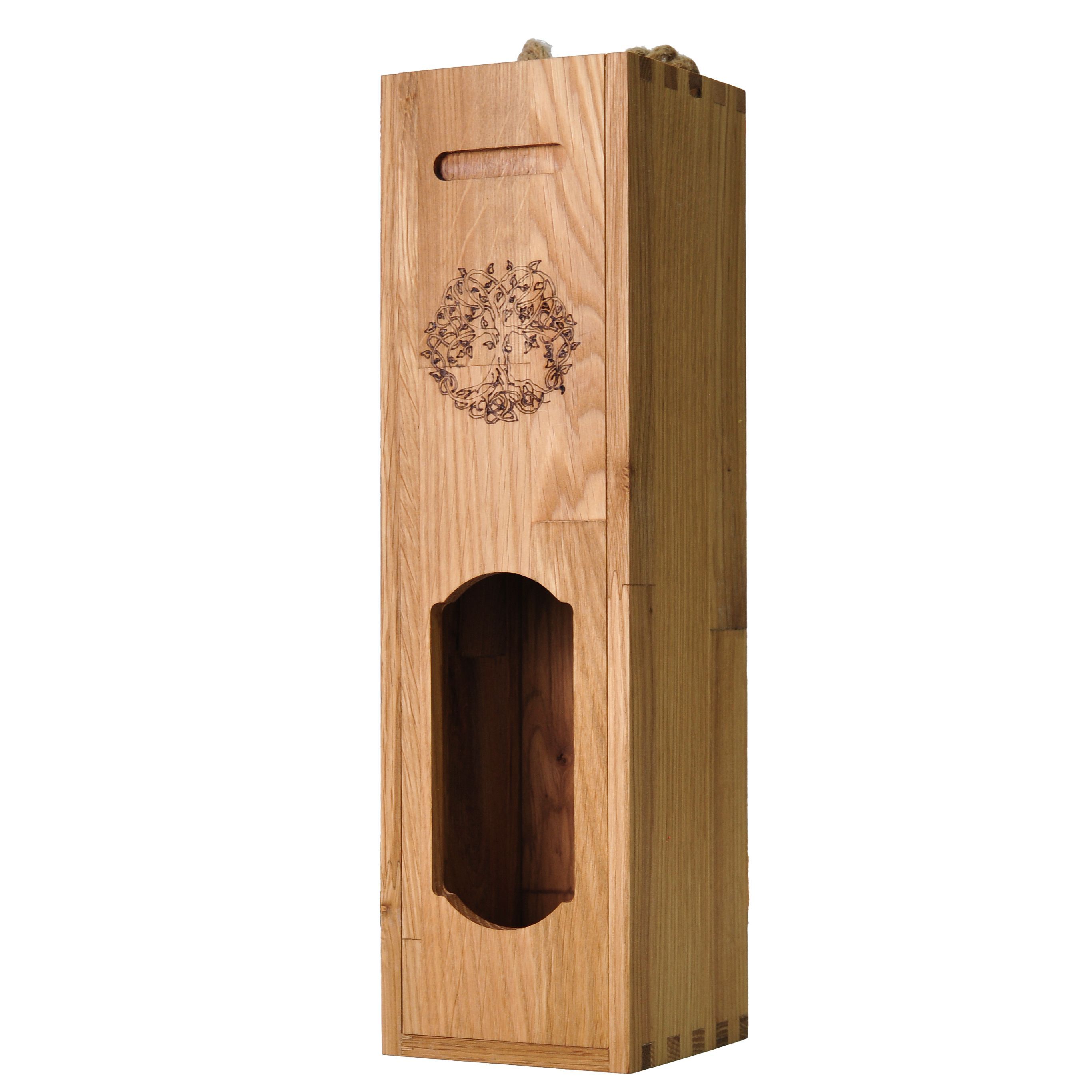 - Дизайн: аккуратное окно для обзора бутылки и лазерная гравировка с символом дерева, что придаёт изделию уникальный характер