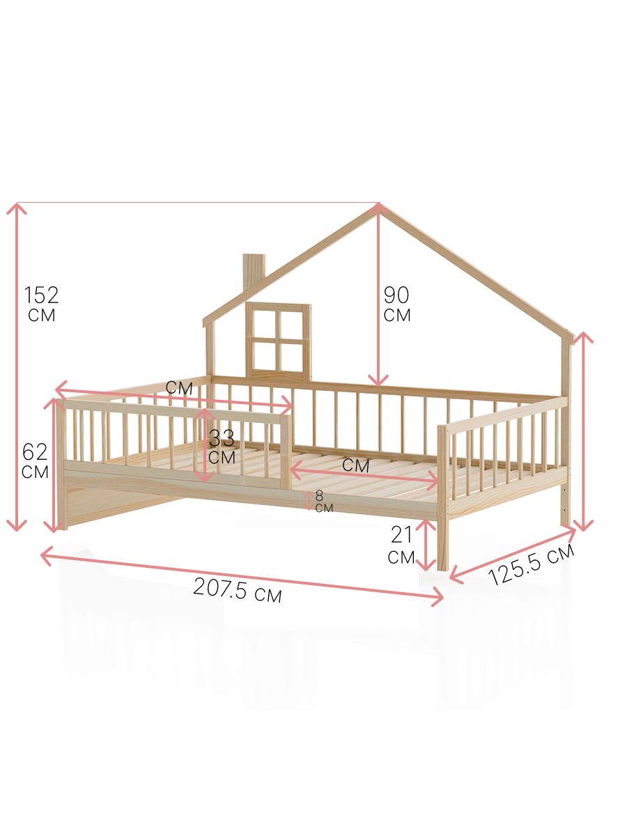 Детскую кровать домик легко собрать за счет набора фурнитуры для сборки, который поставляется вместе с кроватью. В комплекте идёт подробная иллюстрированная инструкция, которая поможет легко и быстро собрать кровать. Изделие укомплектовано настилом 120х200 из массива сосны под матрас (матрас не входит в комплект, докупается отдельно). Рекомендуемый размер матраса 120х200, макс. высота матраса до 20 см.