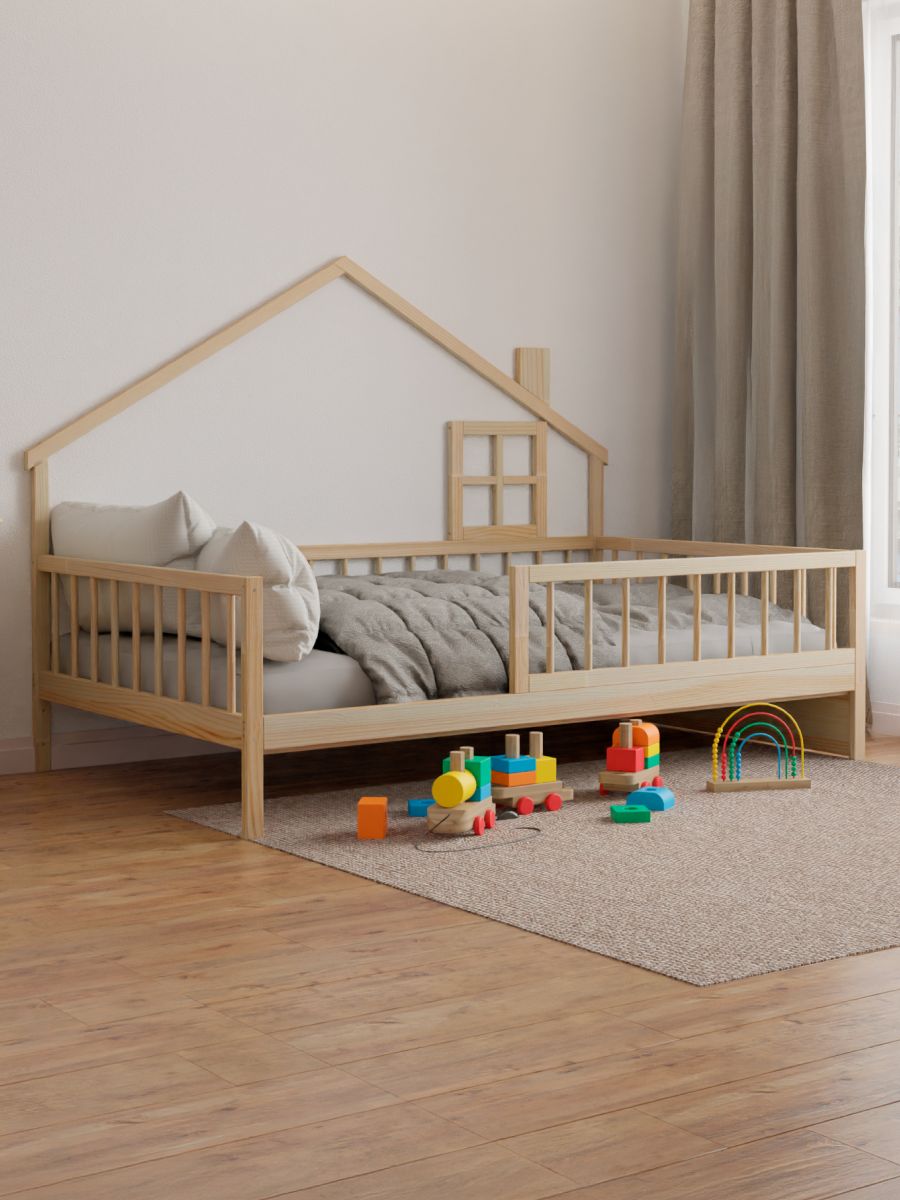 Детская кровать-домик Локи от белорусского производителя ООО "Диприз" в Скандинавском стиле в натуральном цвете. Кровать из массива сосны создаст уютную, творческую обстановку в комнате вашего ребенка. Уникальной особенностью кровати является наличие невысоких ножек, которые предотвращают шанс возможного травмирования. К детской кровати-домику можно дополнительно установить балдахин, оборудовать подсветкой и украсить по своему усмотрению. Кровать имеет бортики безопасности. Необычный дизайн и натуральные материалы позволят дополнить детскую комнату и создать приятную атмосферу. В процессе производства использовались только качественные безопасные материалы и покрытия. Кровать выполнена без отделки, сохраняя натуральные свойства и запахи дерева. Все края и детали были гладко отшлифованы, чтобы предотвратить случайные порезы или удары.