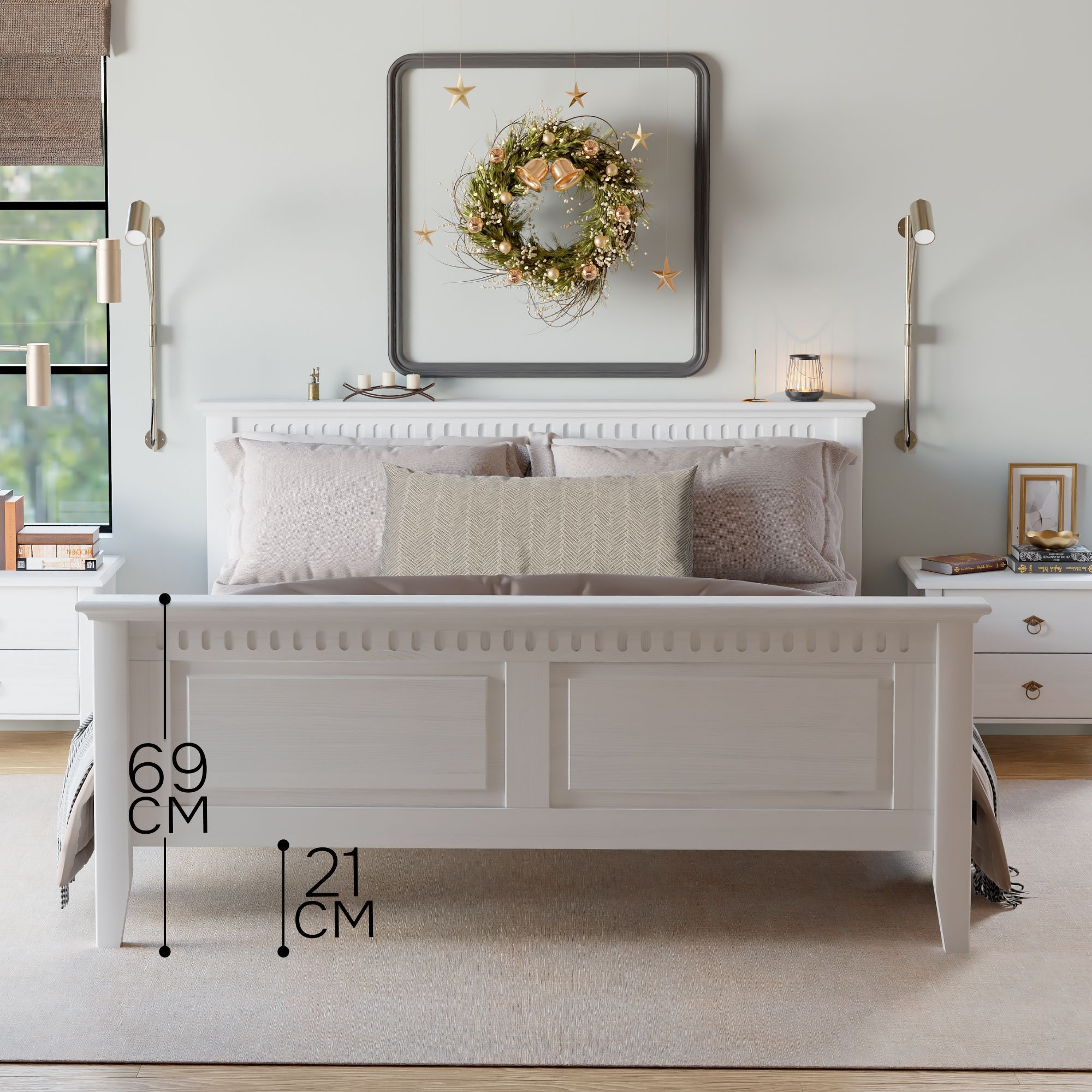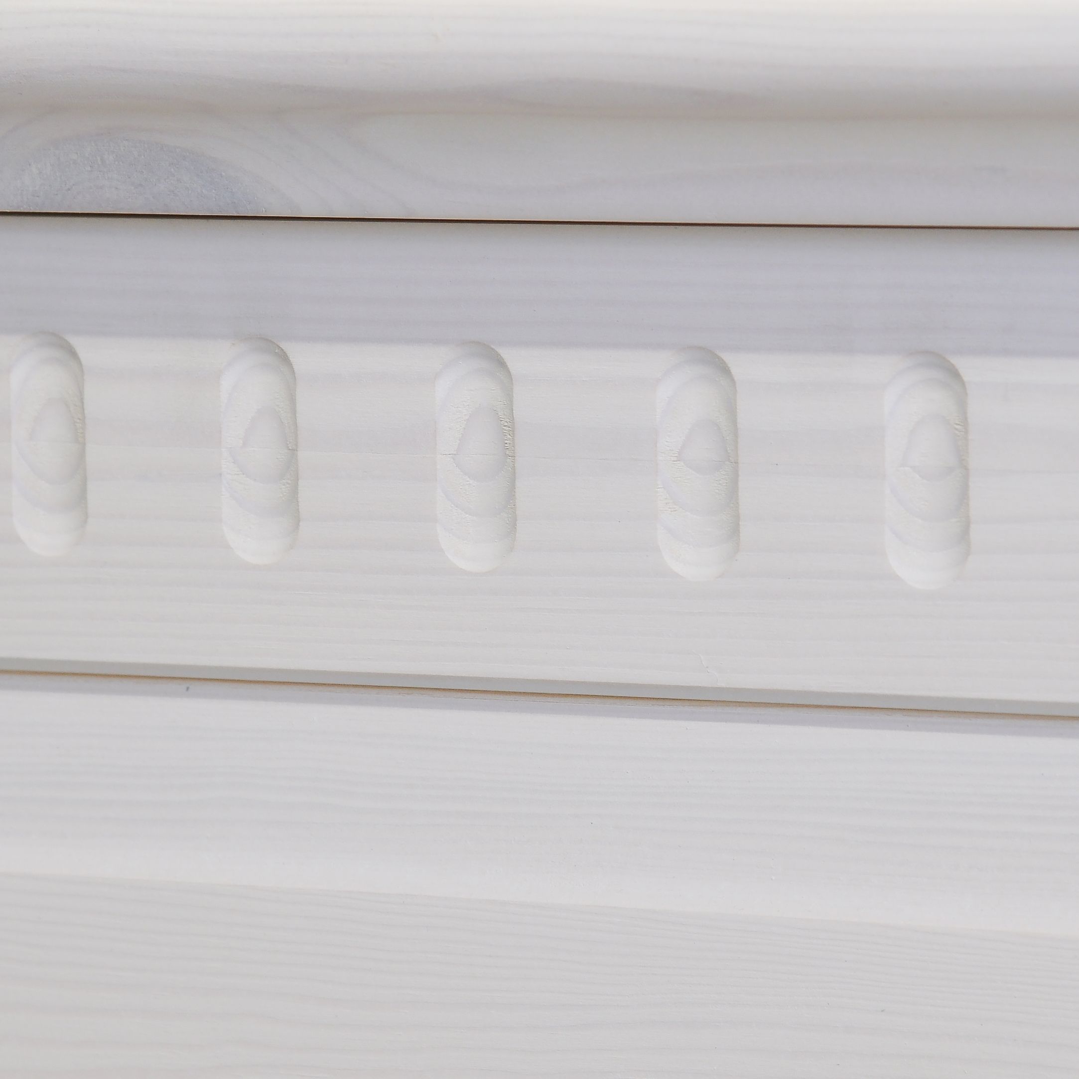 Ключевые преимущества: ✅ Натуральный массив сосны: Прочная, долговечная и «дышащая» конструкция. ✅ Экологичное покрытие на водной основе: Безопасная белая отделка, подчеркивающая фактуру дерева. Не имеет резкого запаха, гипоаллергенна. ✅ Лаконичный классический дизайн: Изящная фрезеровка на спинках добавляет интерьеру утонченности без излишеств. ✅ Высокое качество сборки: Надежная фурнитура и продуманная конструкция обеспечивают долгий срок службы и простую сборку. ✅ Оптимальная высота: Удобная высота спального места (38.5 см) и общая высота кровати (88 см) обеспечивают комфорт при использовании.