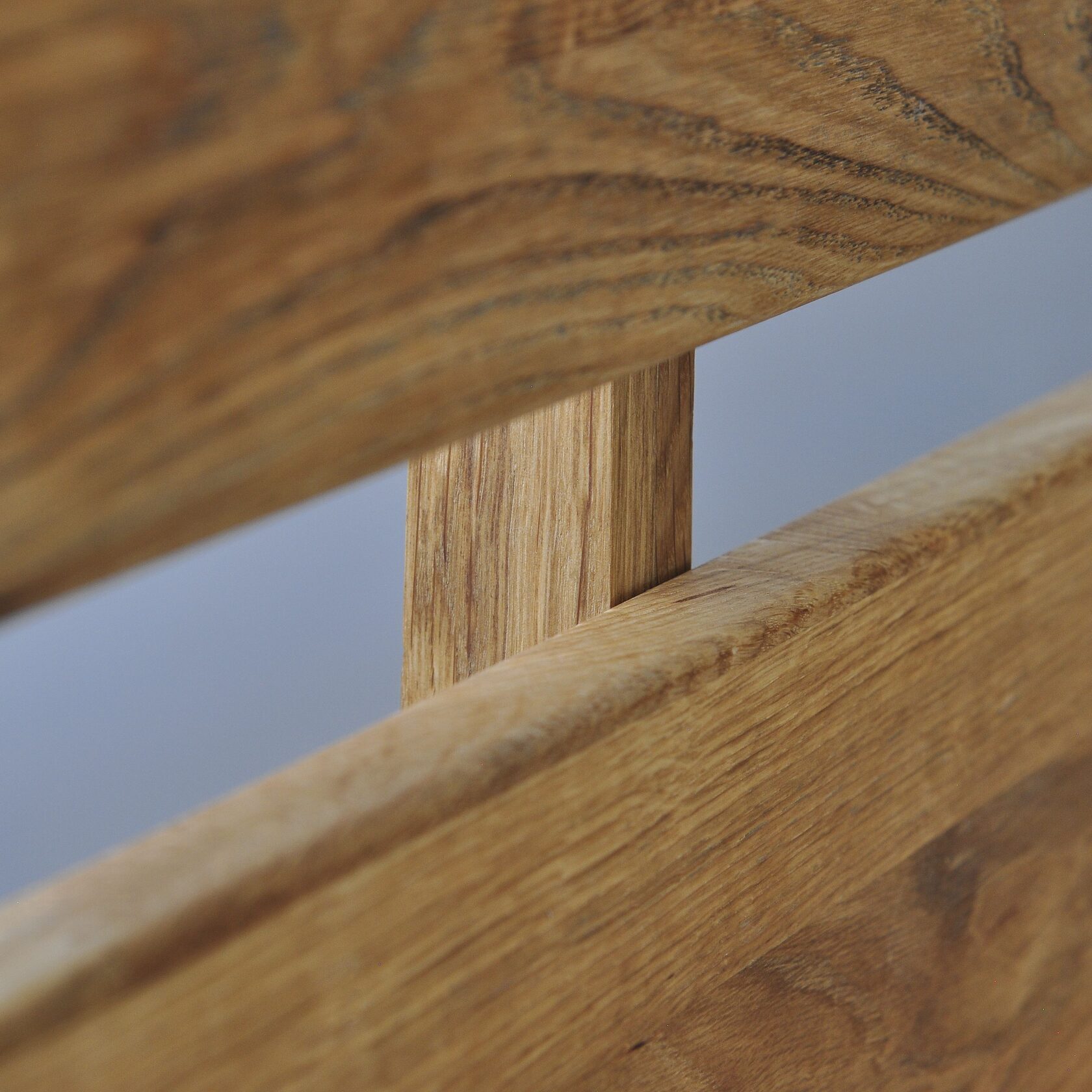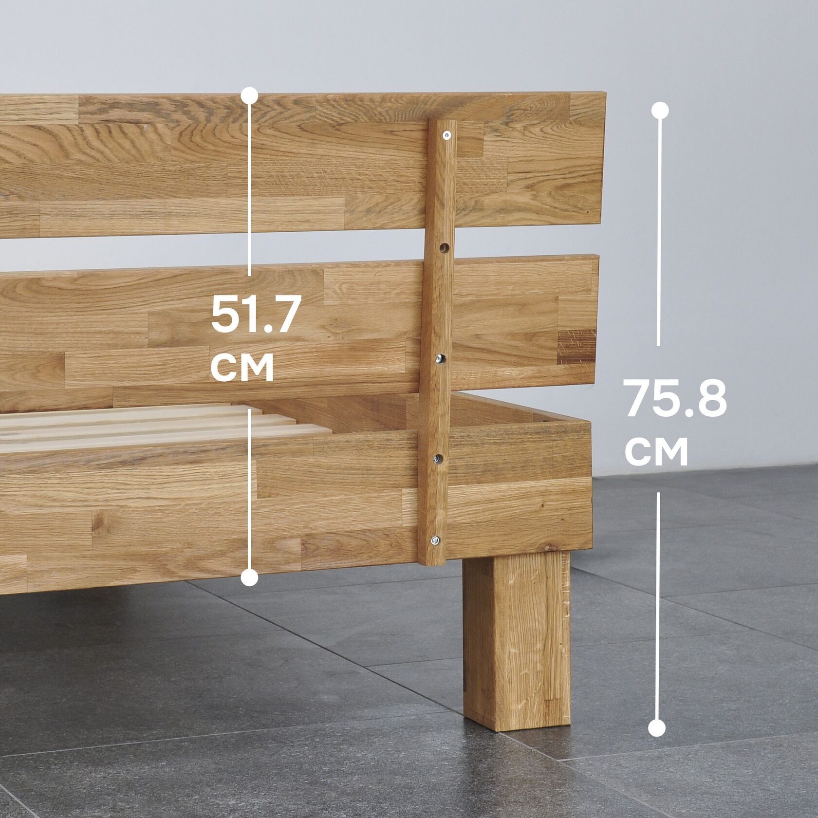 Мы выбрали натуральный массив дуба для создания этой кровати, твердой породы дерева, которая отличается особой надежностью и долговечностью. Ее каркас выполнен из высококачественного цельноламельного дуба толщиной 20 мм, пропитанного натуральным маслом. Это придает кровати прочность и устойчивость к повреждениям.#nbsp;Максимальная допустимая нагрузка составляет 250 кг.