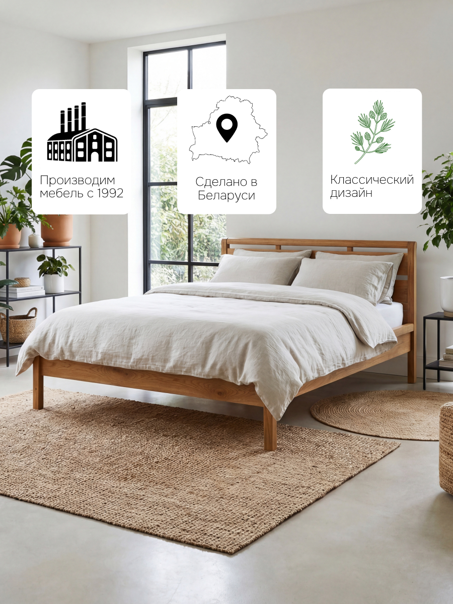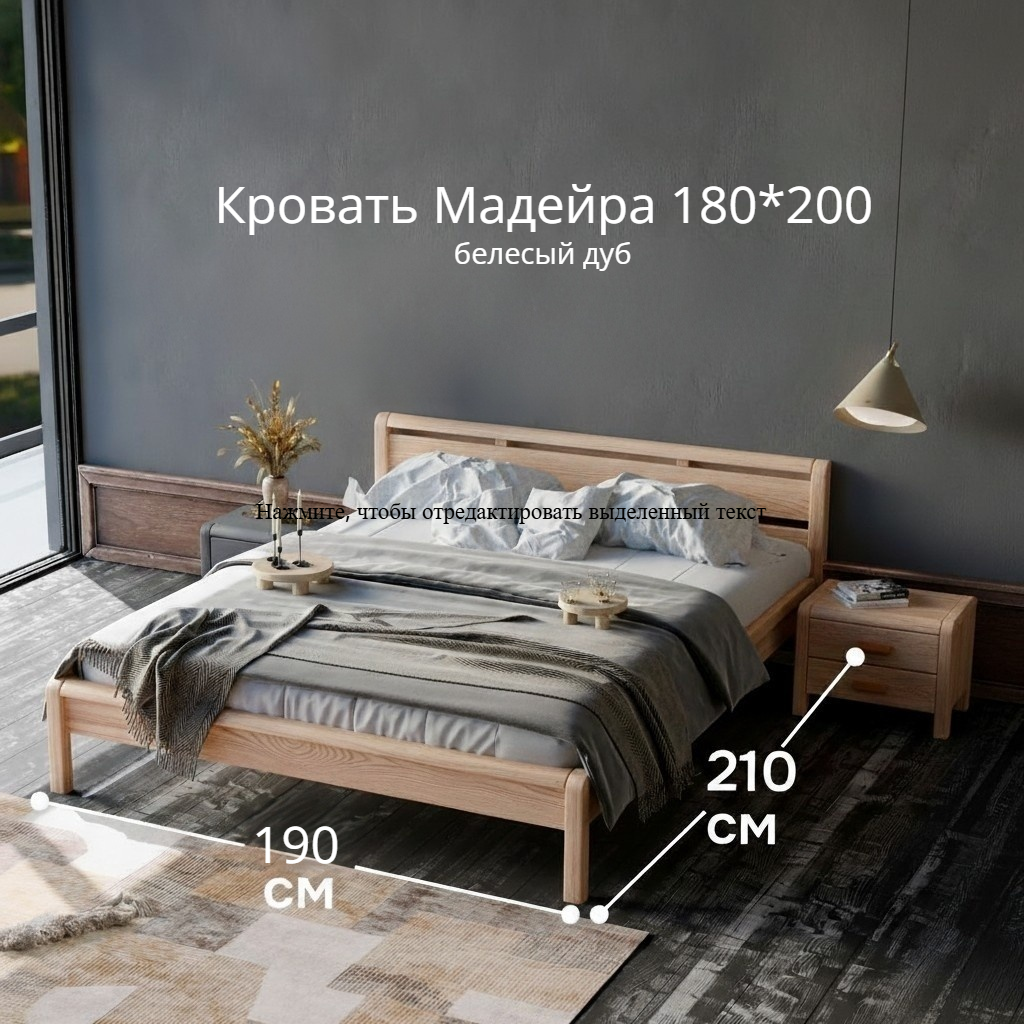 Кровать двуспальная Мадейра размером 180х200 см из массива сосны — идеальный выбор для тех, кто ценит натуральные материалы и современный дизайн. Кровать выполнена в белом цвете, покрыта натуральным воском, идеально дополняя интерьер вашей спальни или детской. Кровать серии Мадейра отличается особенной прочностью и долговечностью благодаря использованию высококачественных материалов. Эта двухспальная кровать имеет просторное спальное место размером 160х200 см, что обеспечивает максимальный комфорт и удобство во время сна. Она идеально подойдет для тех, кто ищет стильную кровать в натуральном и экологичном исполнении.В конструкции кровати используется прочное основание, которое надежно поддерживает матрас и способствует правильному распределению веса, предотвращая деформацию матраса.Особенности двуспальной кровати Мадейра:- Размер спального места: 160х200 см- Материал: массив сосны в натуральной отделке (белый воск)- Прочное и надежное основание из сосны 80х200 см - 2 штЭта деревянная кровать станет великолепным дополнением любого интерьера, будь то классический, скандинавский или стиль лофт. Она легко собирается и будет служить вам долгие годы благодаря прочному деревянному каркасу.Если вы ищете белую двуспальную кровать 160х200, которая будет отличаться высокой прочностью и экологичностью, кровать Мадейра — это идеальный выбор. Она объединяет в себе функциональность, стиль и природную красоту натурального дерева.Кровать Мадейра идеально подойдет для творческих людей, которые желают создать уникальный дизайн своей спальни. Удобная и прочная кровать из дерева подойдет для комнаты в стиле лофт, сканди, ретро. Спинка кровати позволит легко и надежно зафиксировать мягкое изголовье.Кровать легко собирается. Отличается легкостью в уходе. Дополнительную прочность и жесткость конструкции придает перфорированная лента под настилом. Поставляется без матраса и без текстиля, реечное дно без ножек (сечение реек 90х14). Ножки кровати закруглены, сечение ножек 50х50 мм.Кровать двуспальная Мадейра 160х200 см из массива сосны – это гармония простоты и элегантности, которая создаст идеальные условия для вашего комфортного сна.