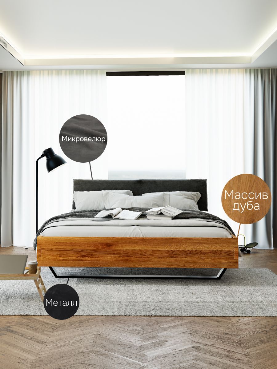 Откройте мир комфорта и стиля с нашей двуспальной парящей кроватью 200х200 Беллиссима из массива дикого дуба!