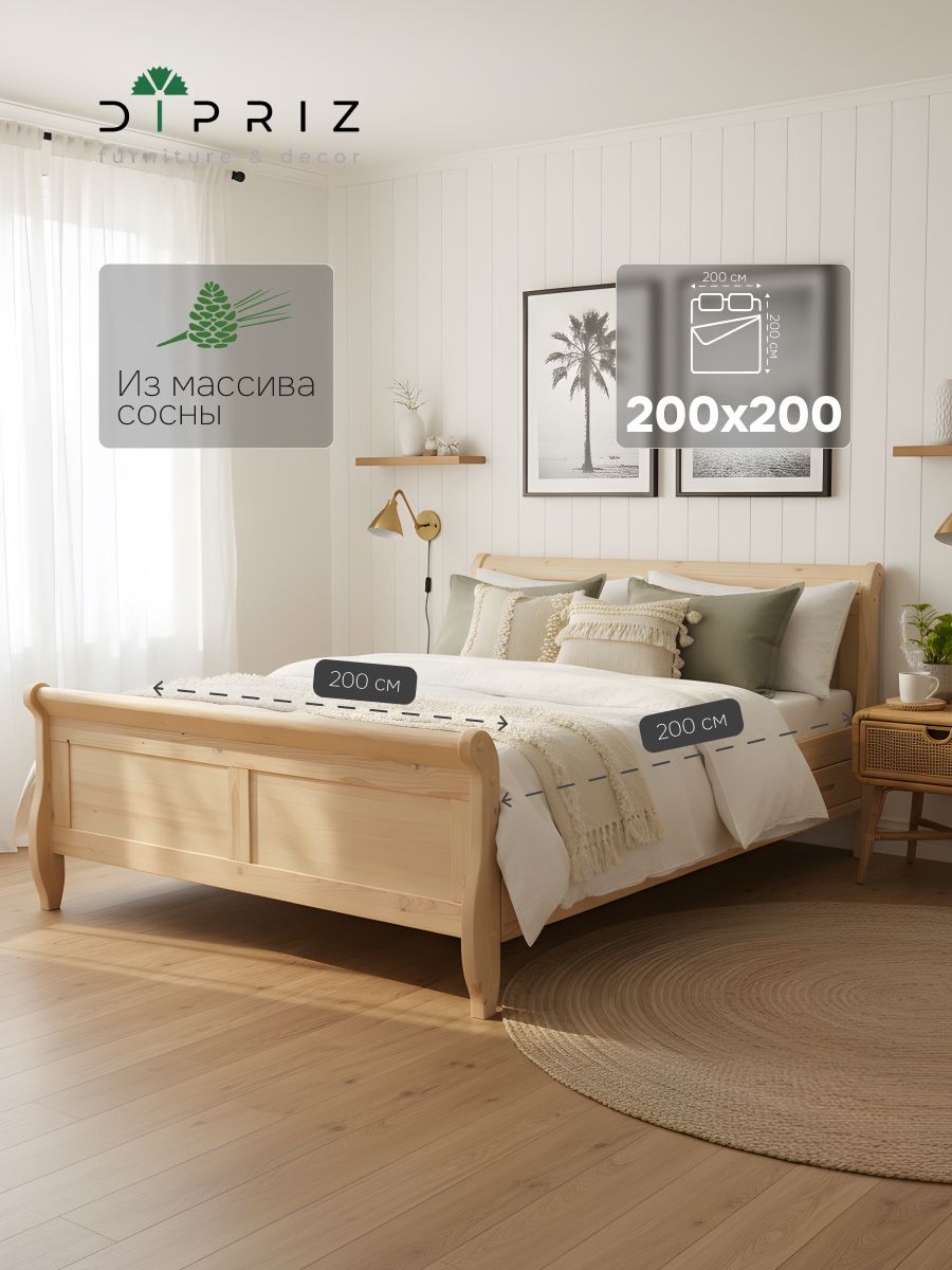 Кровать 200х200 из дерева, выполненная из массива сосны воплощает элегантность и функциональность. Классический дизайн данной двуспальной кровати придает комнате утонченный и уютный вид. Натуральная древесина гладкие линии идеально вписываются в любой интерьер, от традиционного до современного, добавляя теплоту и натуральную эстетику