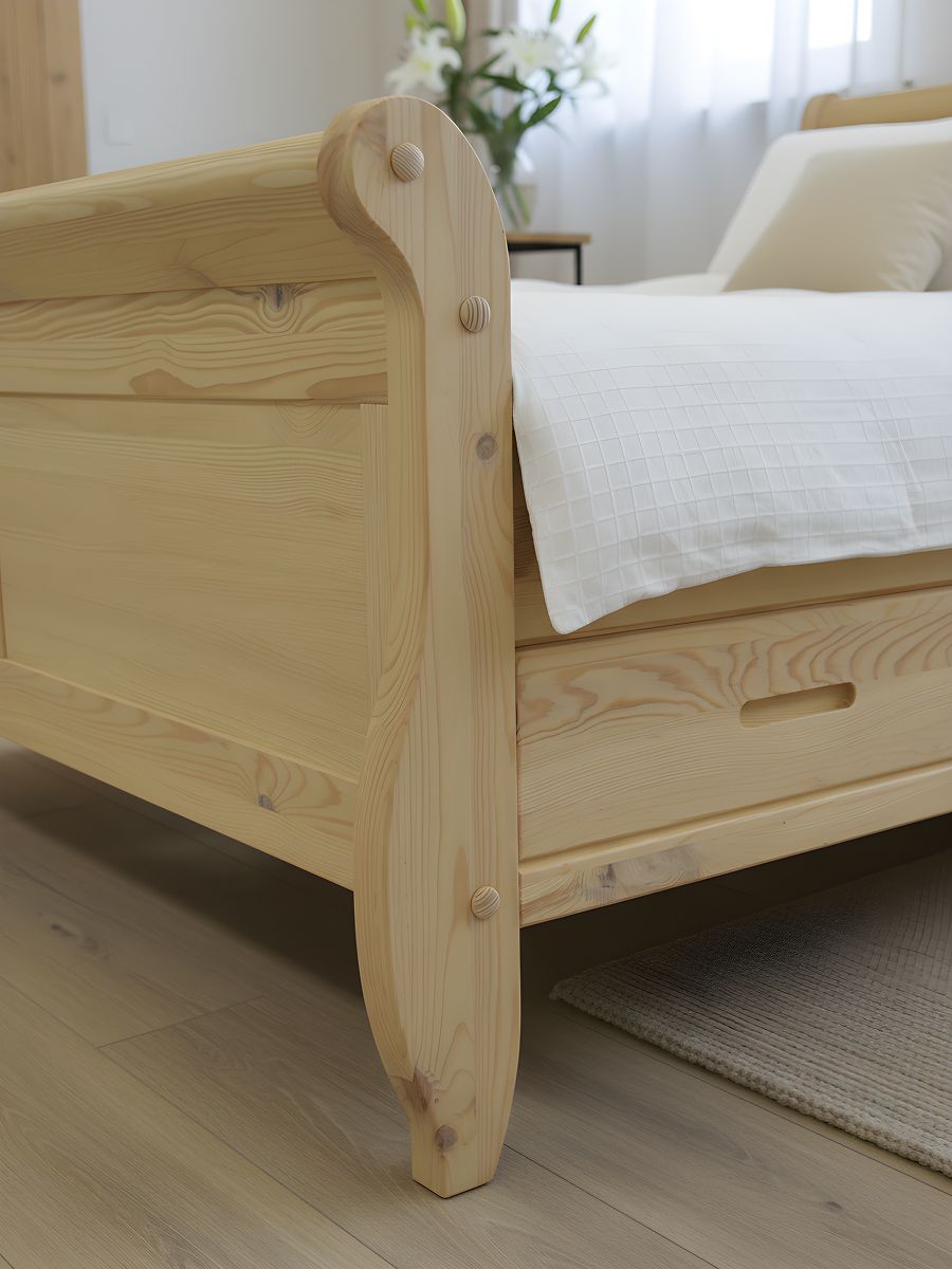 Кровать деревянная оснащена двумя просторными выдвижными ящиками, которые обеспечивают дополнительное место для хранения. Это особенно удобно для компактных спален, где важно использовать каждый сантиметр пространства рационально. Ящики легко выдвигаются и позволяют хранить постельное белье, одежду или другие предметы, сохраняя порядок в комнате.