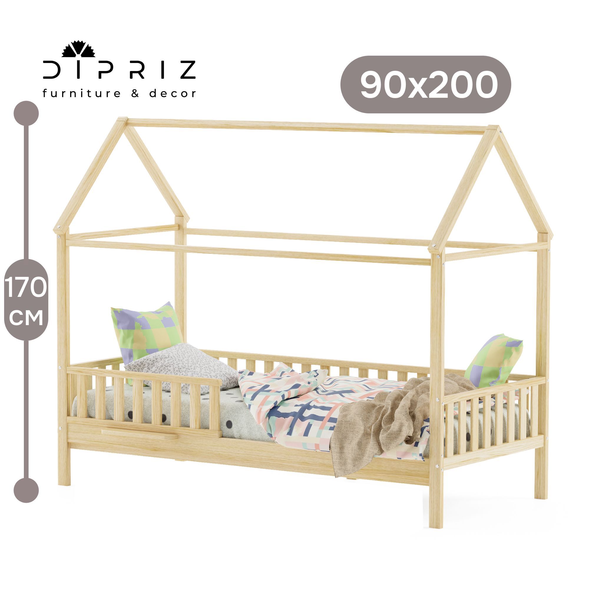 Детская односпальная кровать-домик Авила из массива березы от белорусского производителя "Диприз" идеально сочетает современный дизайн, скандинавский стиль, качество и безопасную конструкцию.