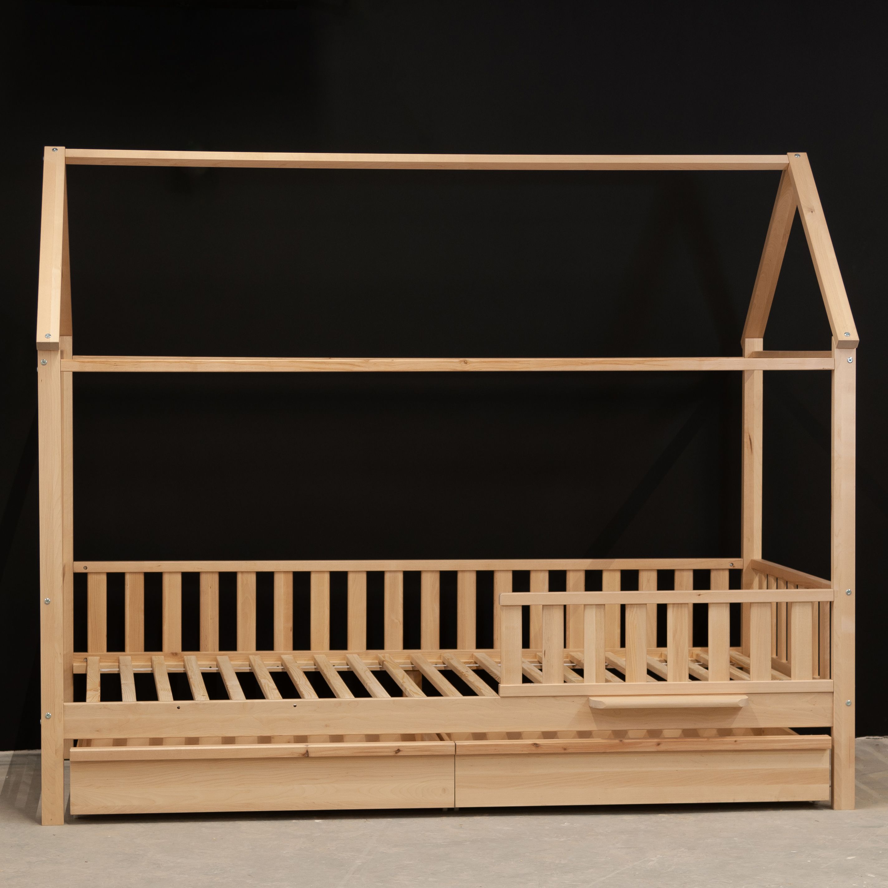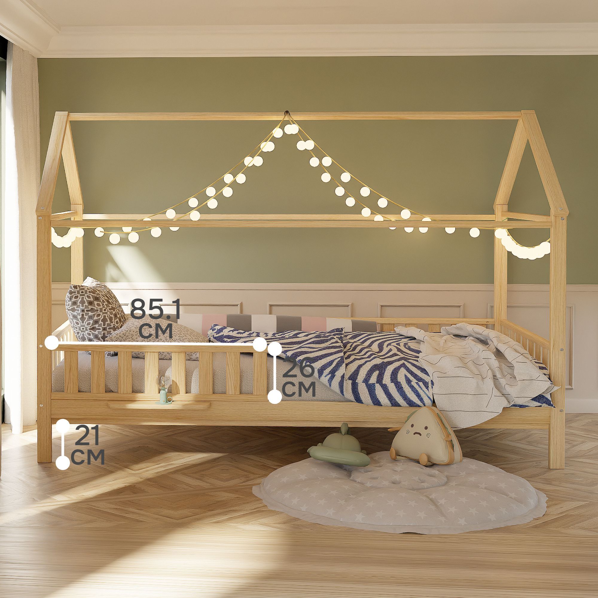 Детскую кровать домик с бортиками легко собрать за счет набора фурнитуры для сборки, который поставляется вместе с кроватью. В комплекте идёт подробная иллюстрированная инструкция, которая поможет легко и быстро собрать кровать. Изделие укомплектовано настилом под матрасы (матрас не входит в комплект, докупается отдельно). Рекомендуемый размер матраса 90х200, макс. высота матраса до 20 см. Возможна установка бортика на правую и левую сторону во время сборки. Бортик можно не устанавливать при сборке.