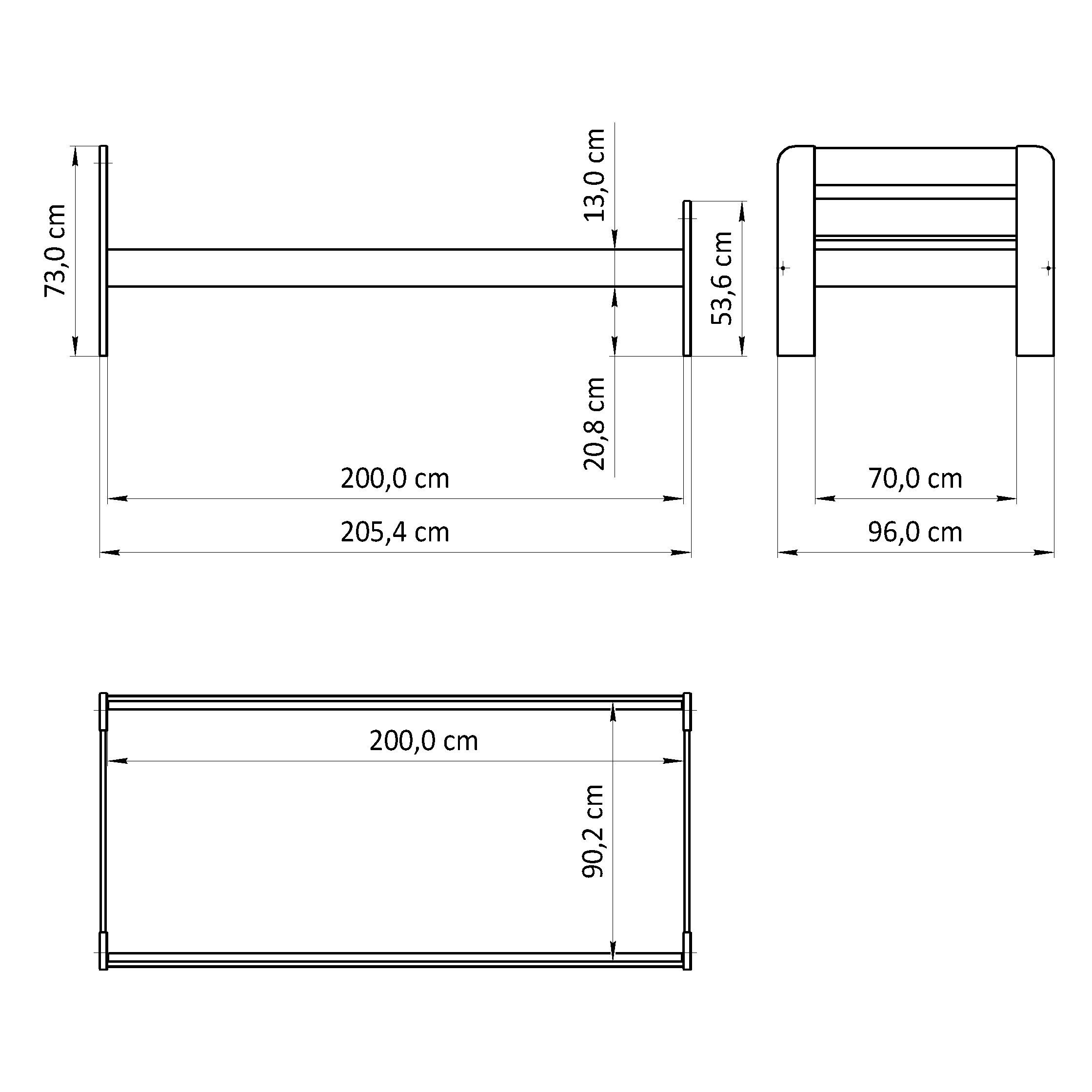 Габариты кровати односпальной: длина - 205 см, ширина - 96 см, высота от пола до верха спинки - 73 см, высота от пола до низа царги - 20,8 см. Максимально допустимая нагрузка - до 100 кг.