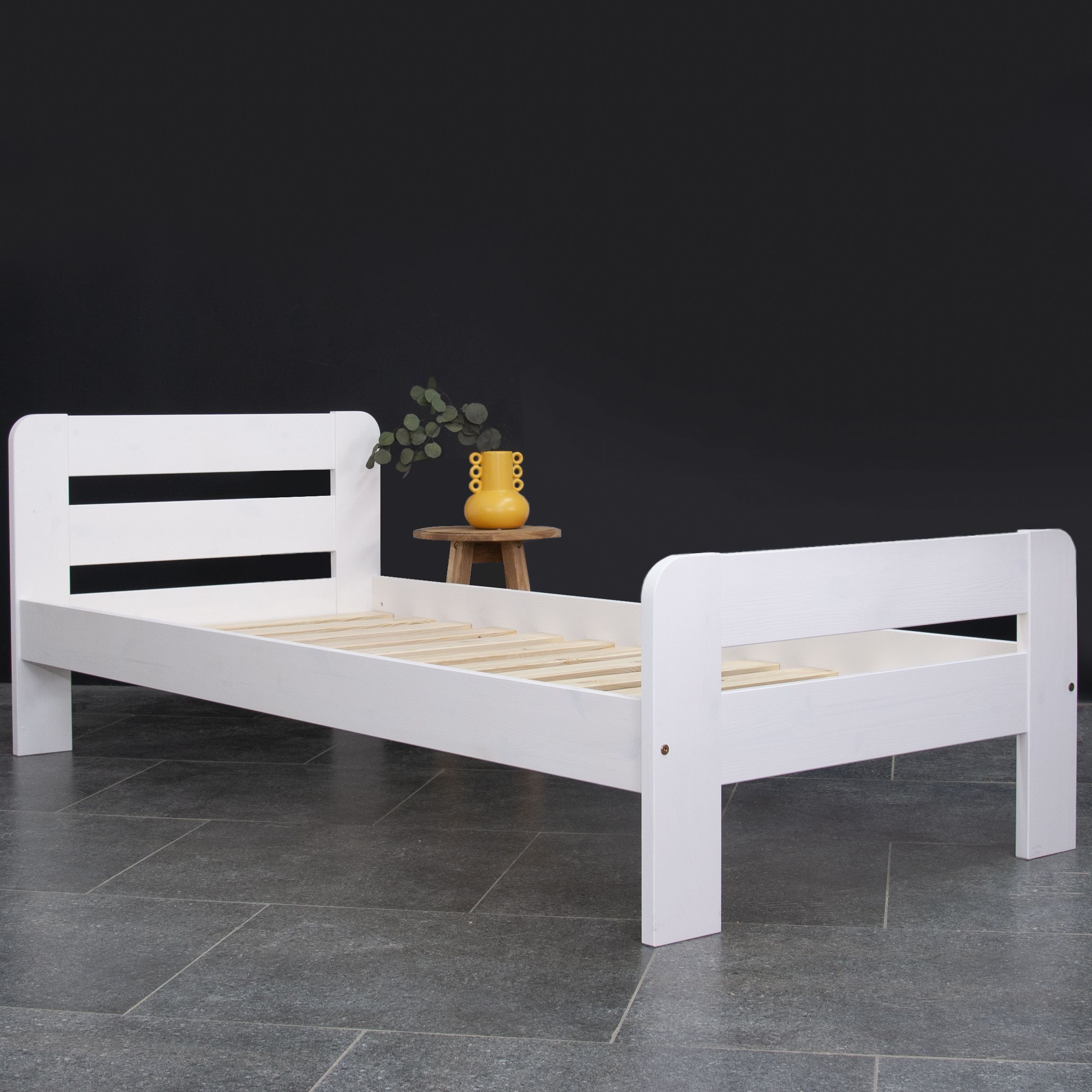 Кровать подростковая укомплектована настилом из массива сосны для спального места 90х200 см. В комплекте также идет полный комплект фурнитуры и пошаговая инструкция для легкой самостоятельной сборки. Обратите внимание, что матрас, ящики и постельное Вы докупаются отдельно!