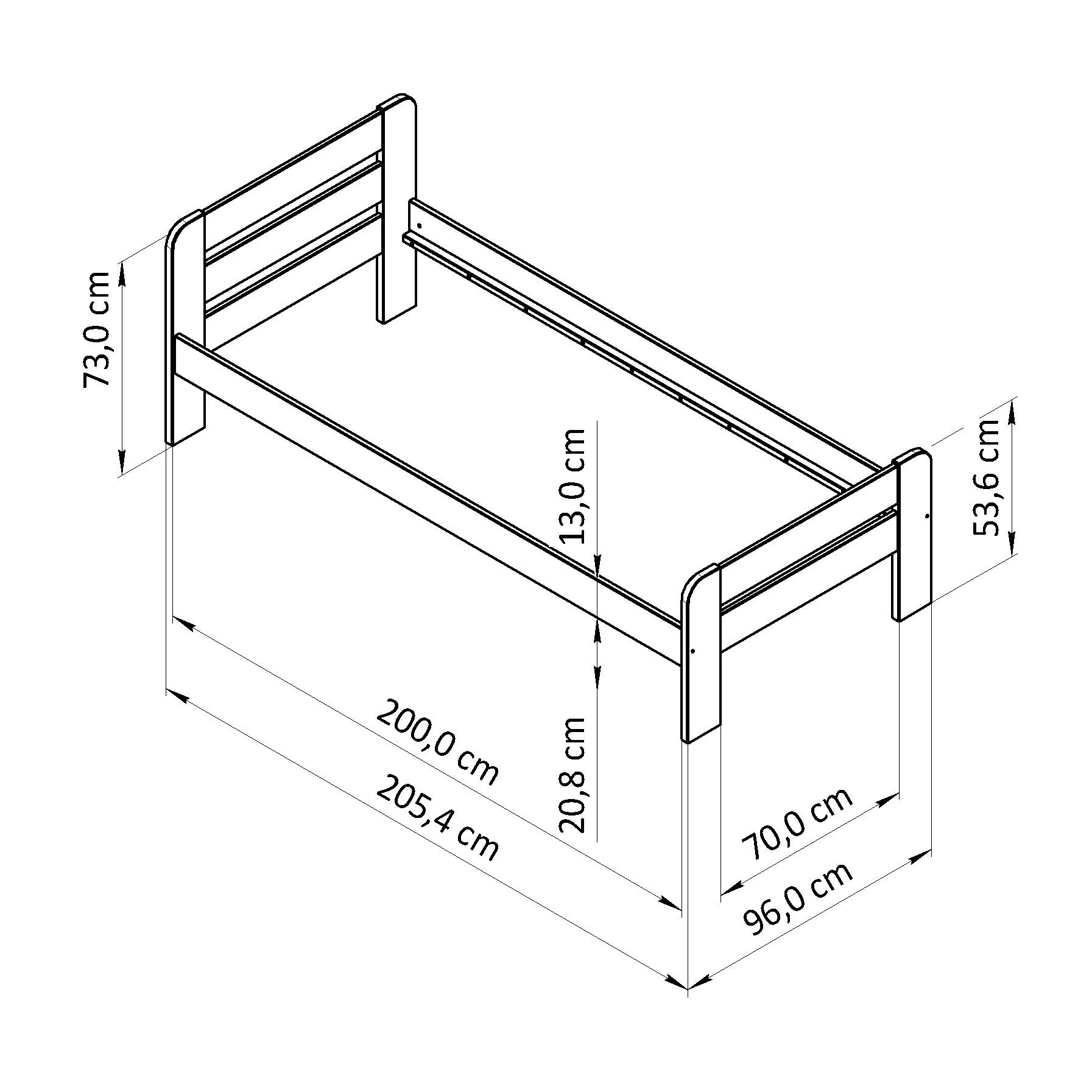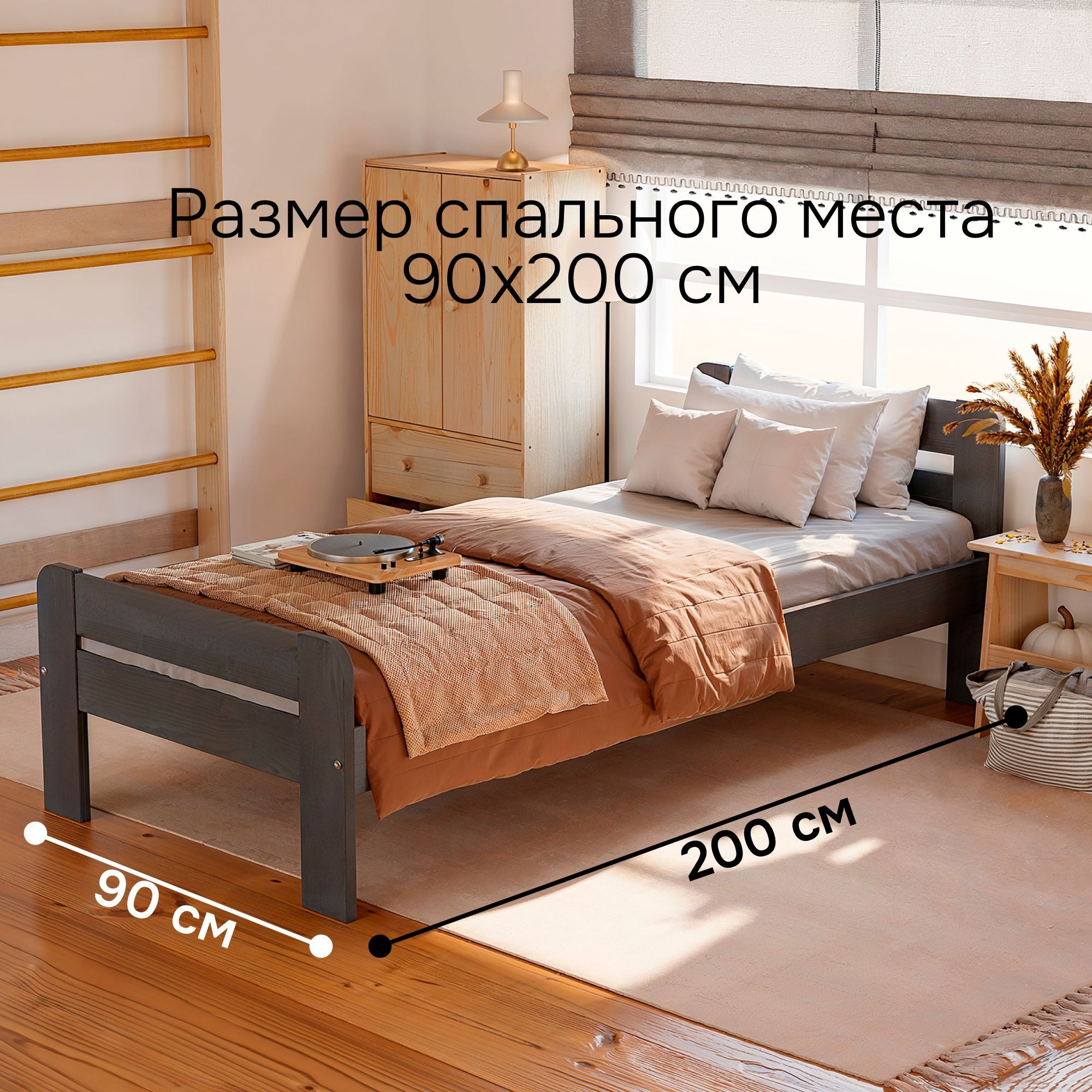 Уютная кровать Берт от белорусского производителя мебели ООО "Диприз" (размер спального места 90х200) изготовлена из массива сосны. Наша кровать 90х200 сделает Ваш сон крепким, а отдых -безмятежным. Габариты кровати 90х200 длина - 205,4 см, ширина - 96 см, высота от пола до верха спинки- 73 см, высота от пола до низа царги - 20,8 см. Максимально допустимая нагрузка-100 кг. Кровать односпальная 90х200 укомплектована настилом. Отделка товара кровать 90*200 - лак серого цвета, это означает, что покрытие будет плотным и полностью тонирует основание, скрывая текстуру дерева. Данный вид отделки создает необходимый защитный слой, такое покрытие хорошо сохраняет структуру натурального дерева и позволяет свободно эксплуатировать поверхность мебели во влажной среде. Данный вид покрытия относится к натуральным на водной основе и соответствует всем требованиям экологичности. Благородный антрацитовый оттенок серого цвета и тонкий, едва уловимый, запах сосны создадут ощущения тепла и комфорта. Кровать односпальная выглядит стильно и современно. Ее классический дизайн легко может вписаться в любой интерьер квартиры, загородного дома, дачи, гостиницы или хостела. Этот предмет мебели очень прост в уходе, а его сборка, благодаря приложенной подробной инструкции не составит большого труда.
