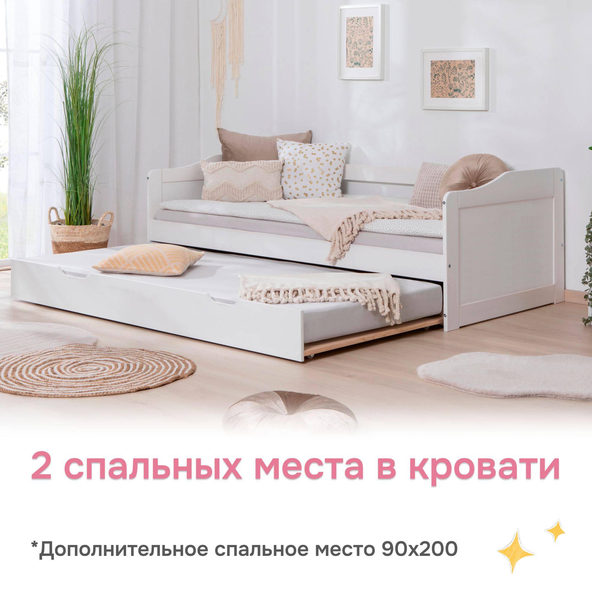 Размеры кровати в собранном виде: Ширина х Длина х Высота, см - 97 х 204 х 60 см – идеально подходят для детской комнаты, а Ширина с выдвинутым местом - 190 см.
