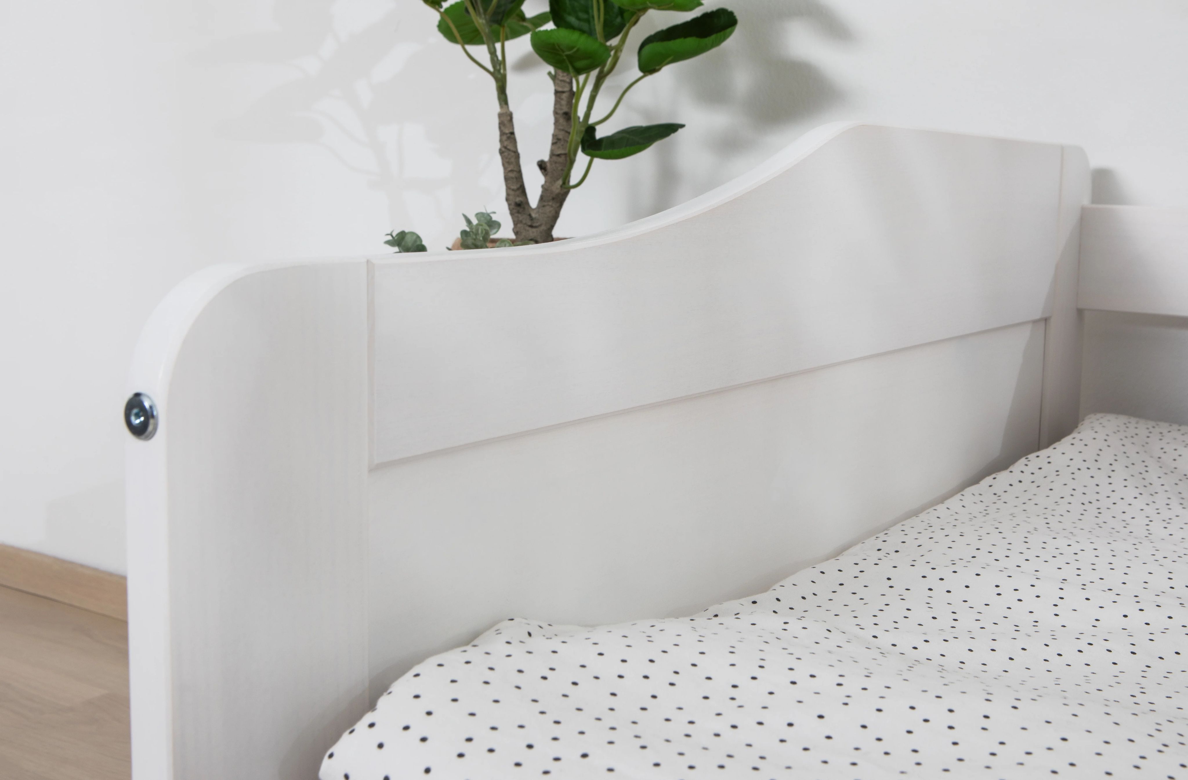 Кровать выполнена из экологичного массива сосны, покрыта белым воском на водной основе, что гарантирует безопасность и долговечность изделия. Натуральная сосна в белом цвете придаст вашему интерьеру легкость и свежесть.