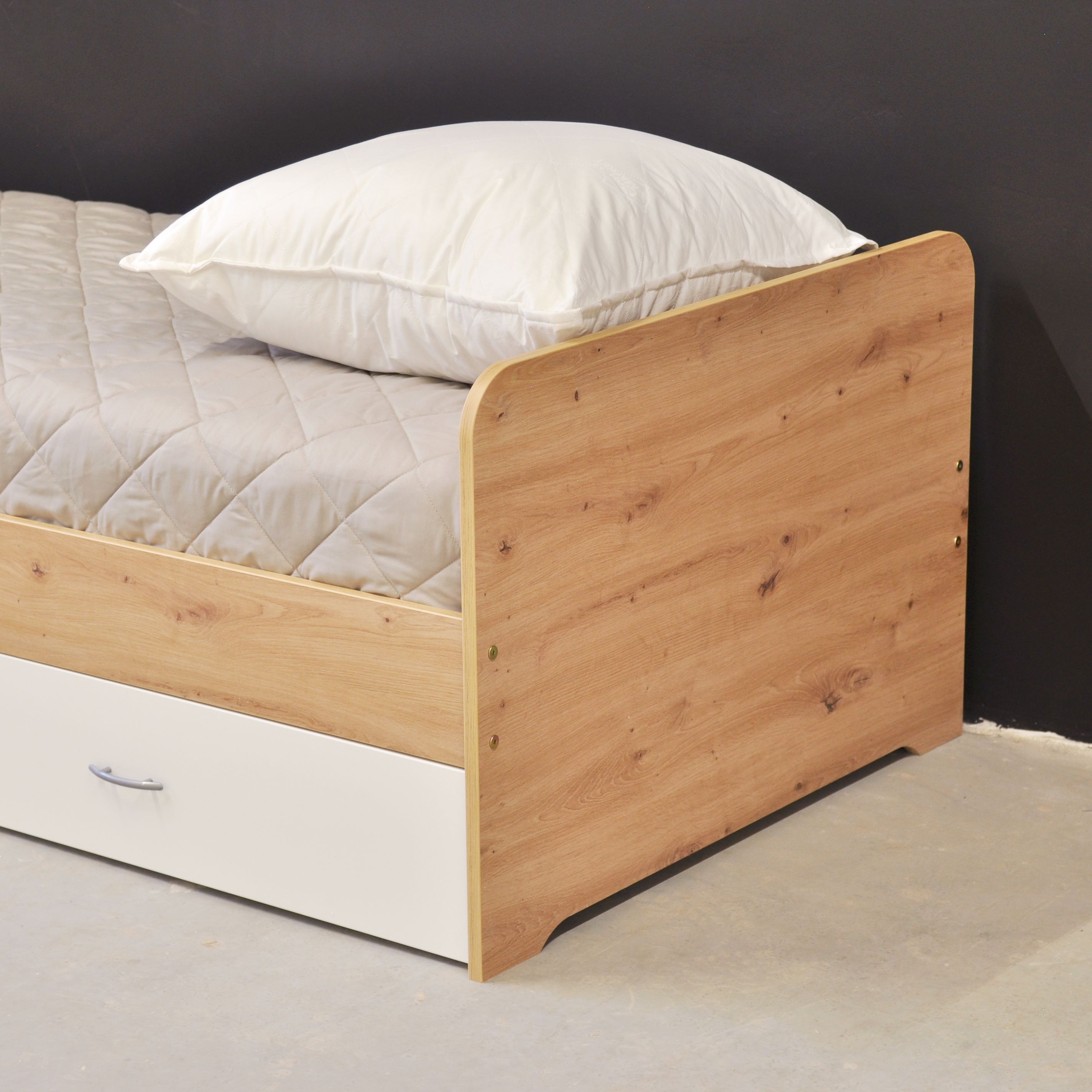 Сочетание цветов натурального дуба артизана и чистого белого придаст вашему интерьеру легкость и свежесть. Детская кровать идеально подойдет для любителей минимализма, скандинавского, а также современного стилей.