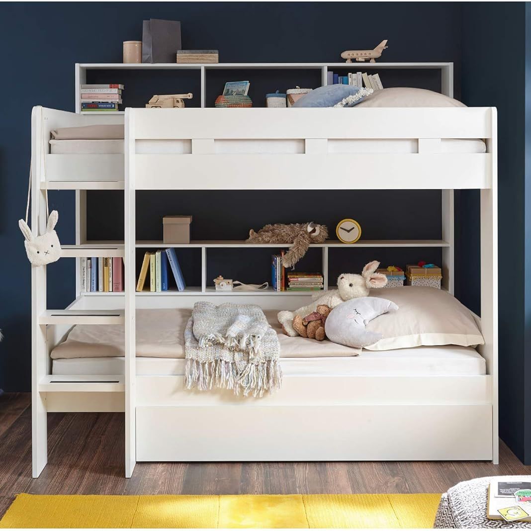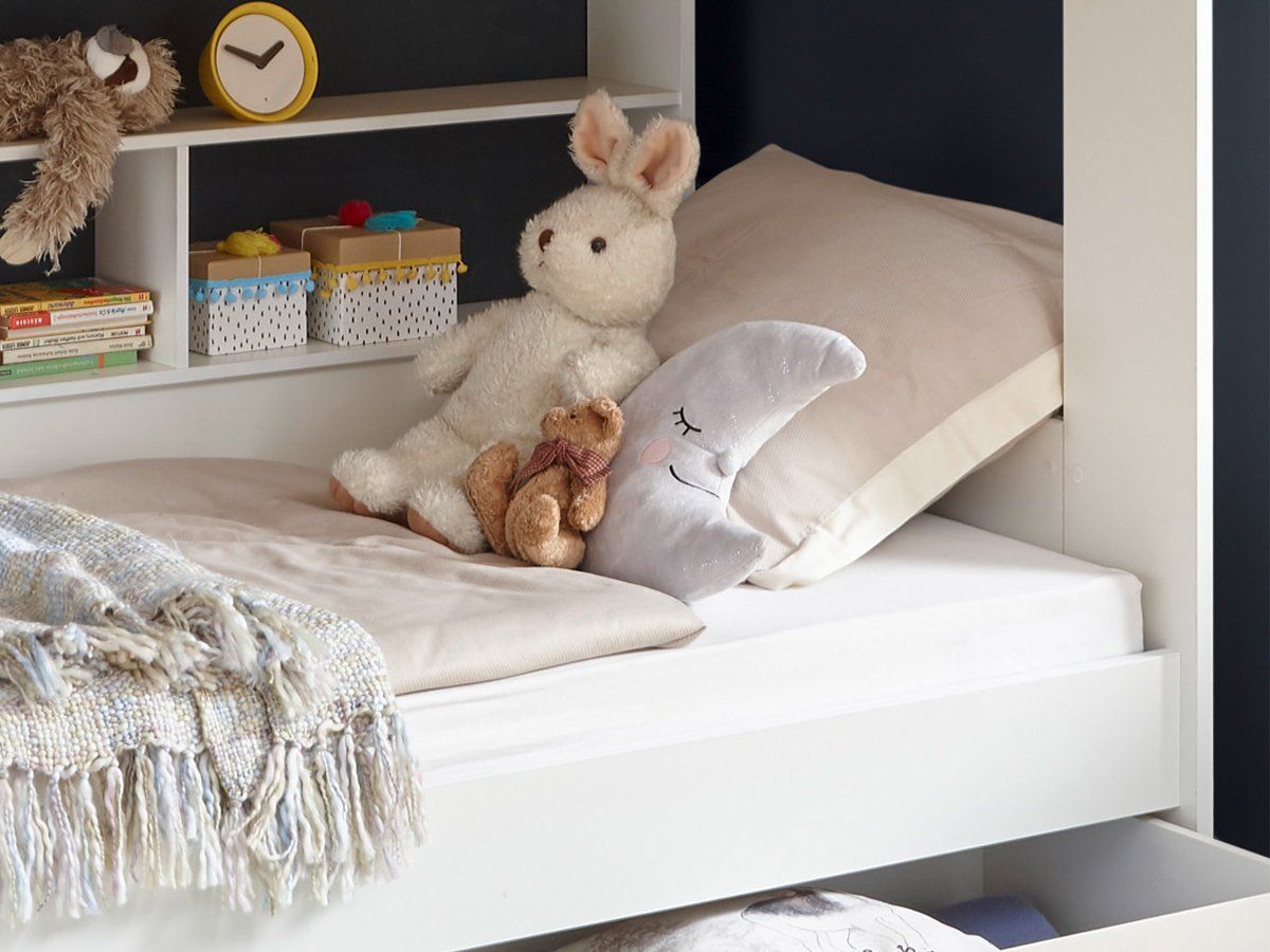 Много места для хранения – эта кровать обеспечивает порядок в спальне. Она предлагает полки, чтобы книги и игрушки можно было удобно хранить. В выдвижном ящике для кровати удобно хранить пастельное белье, подушки и одеяла.