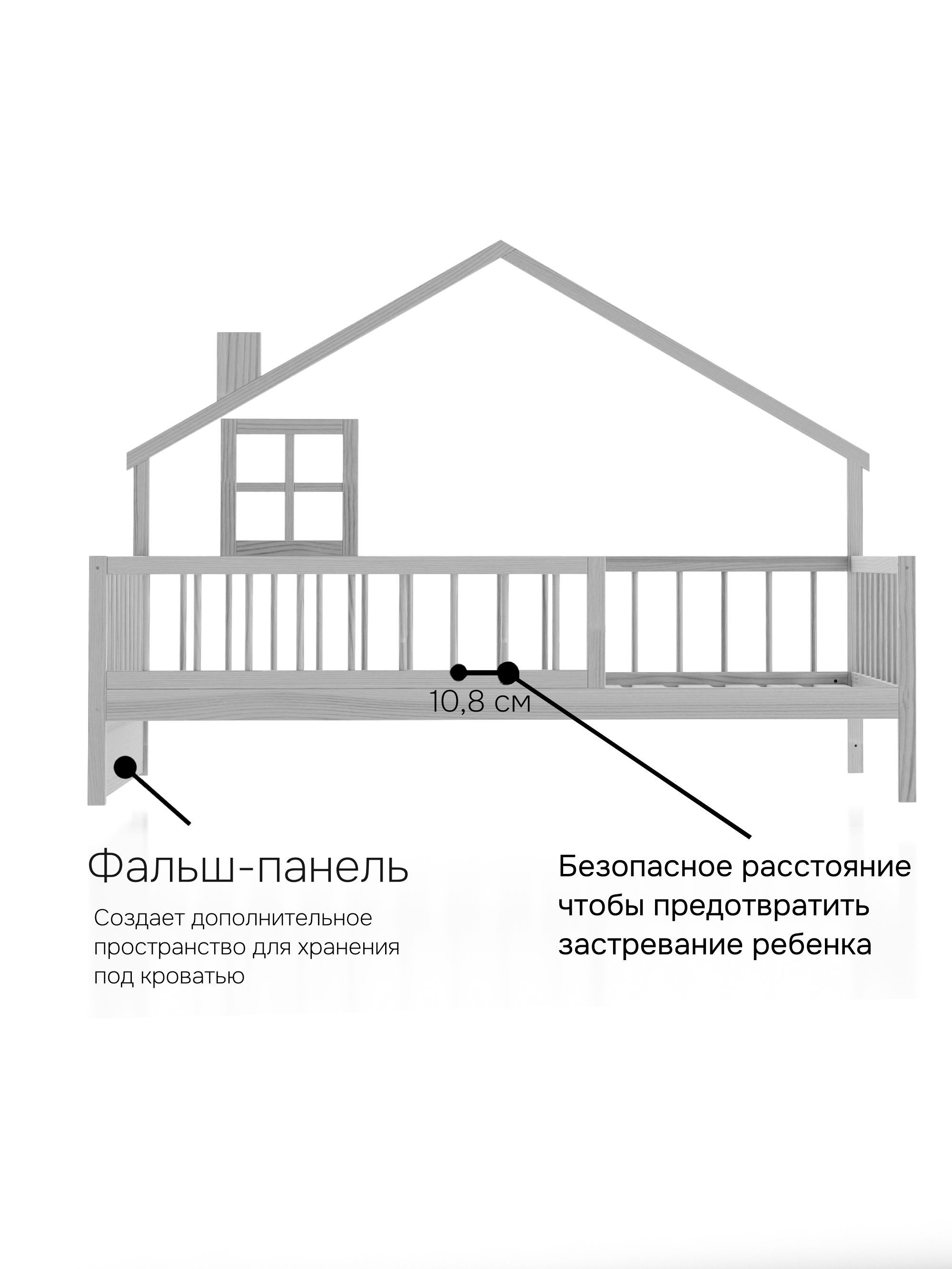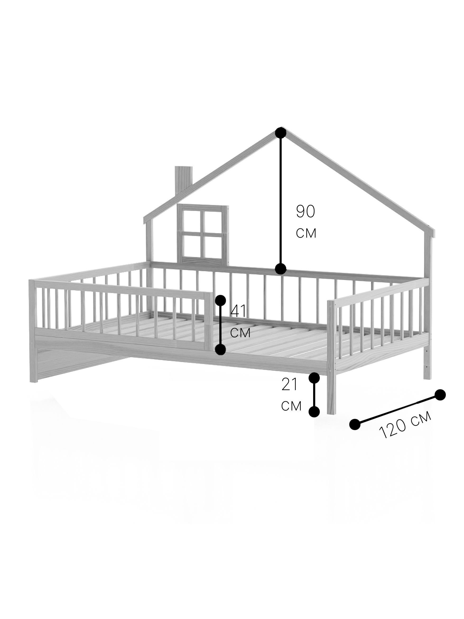 Кровать изготовлена из натуральной древесины - массива сосны, она не не пахнет краской, а наполняет помещение тонким и приятным ароматом хвойного дерева. Максимально допустимая нагрузка 200 кг на одно спальное место позволяет использовать ее как детскую и подростковую кровать домик, также в качестве односпальной кровати для взрослых.