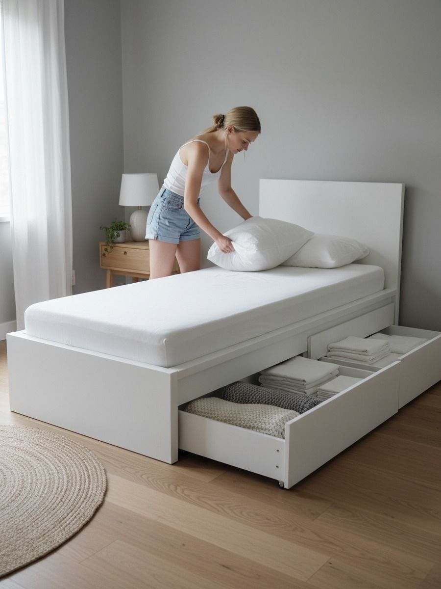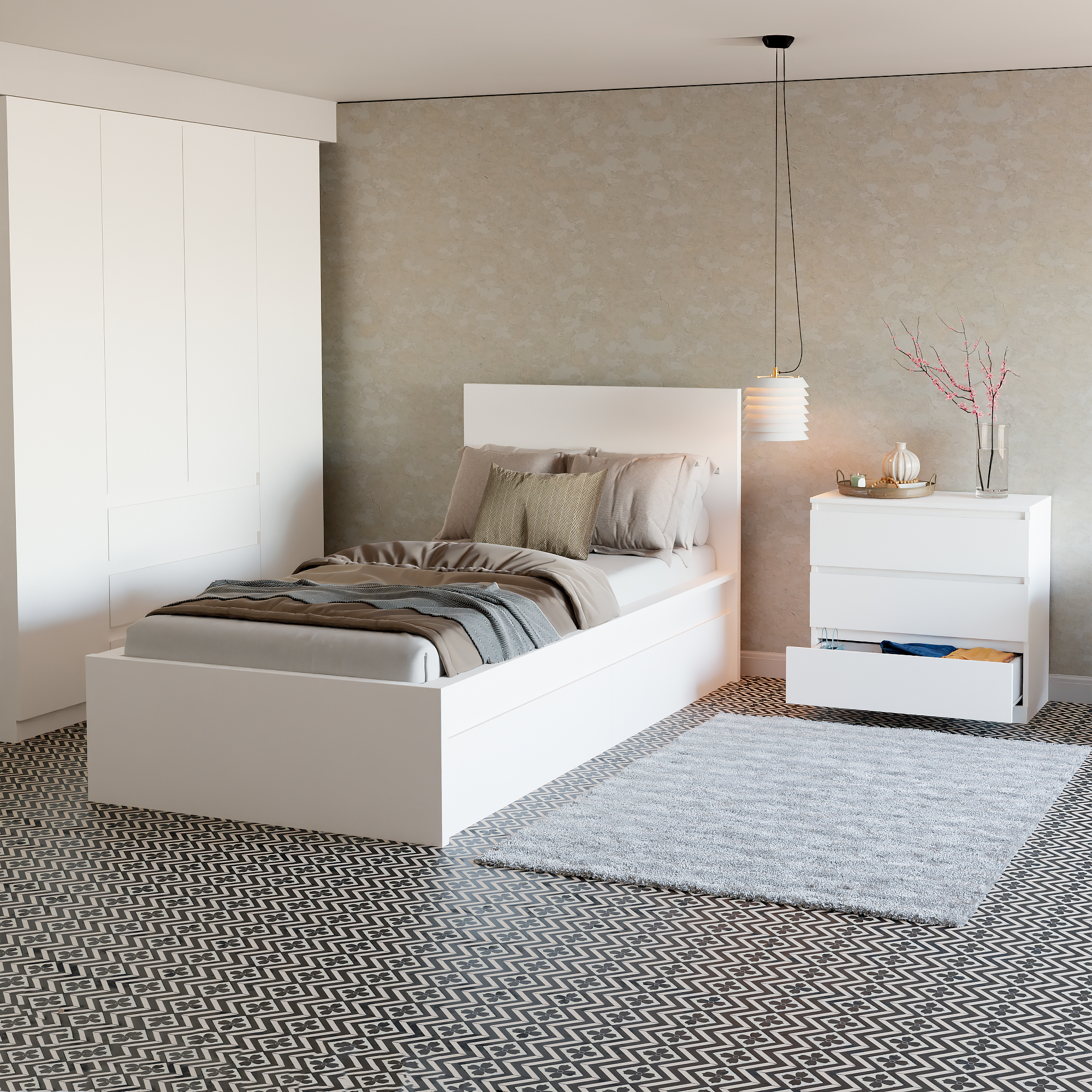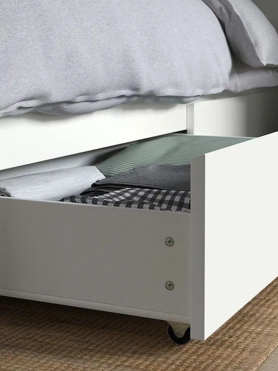 - Скандинавский стиль и элегантный дизайн IKEA: Простые линии, светлые оттенки и минимализм делают эту кровать универсальным выбором для любого интерьера. Белая односпальная кровать визуально расширяет пространство, добавляет света и придает комнате атмосферу уюта.