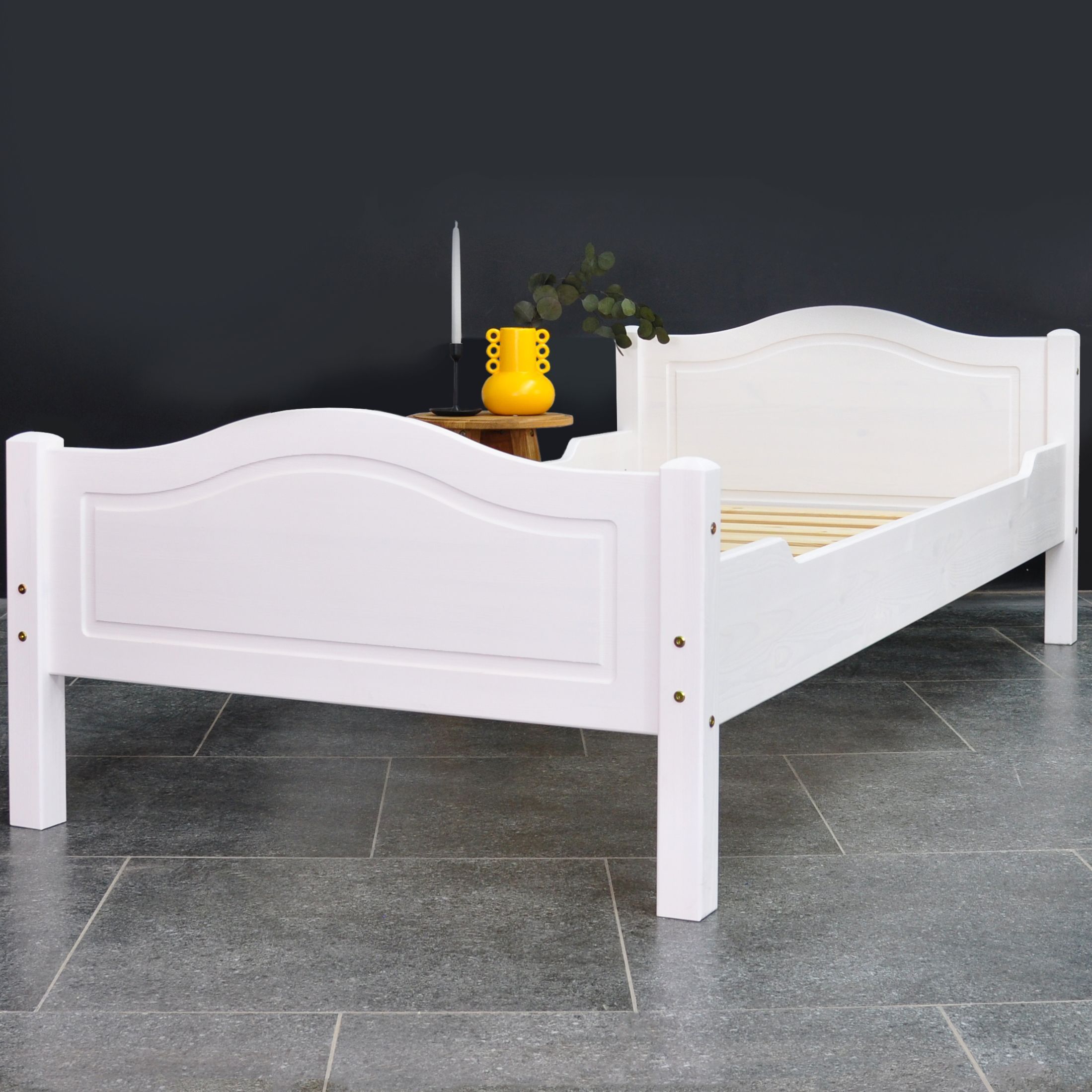 Стильная односпальная кровать из массива сосны наполнит уютом детскую комнату. Кровать выполнена из экологически чистого дерева. А мы в свою очередь постарались в процессе производства сохранить тепло леса. Изделие, выполненное из массива сосны, прослужит много лет. Это экологически чистый продукт, не содержит вредных для здоровья элементов. Отделка товара - белый воск укрывистый, это означает, что покрытие будет плотным и полностью тонирует основание, скрывая текстуру дерева. Данный вид отделки создает необходимый защитный слой, такое покрытие хорошо сохраняет структуру натурального дерева и позволяет свободно эксплуатировать поверхность мебели во влажной среде. Покрытие относится к натуральным на водной основе и соответствует всем требованиям экологичности.