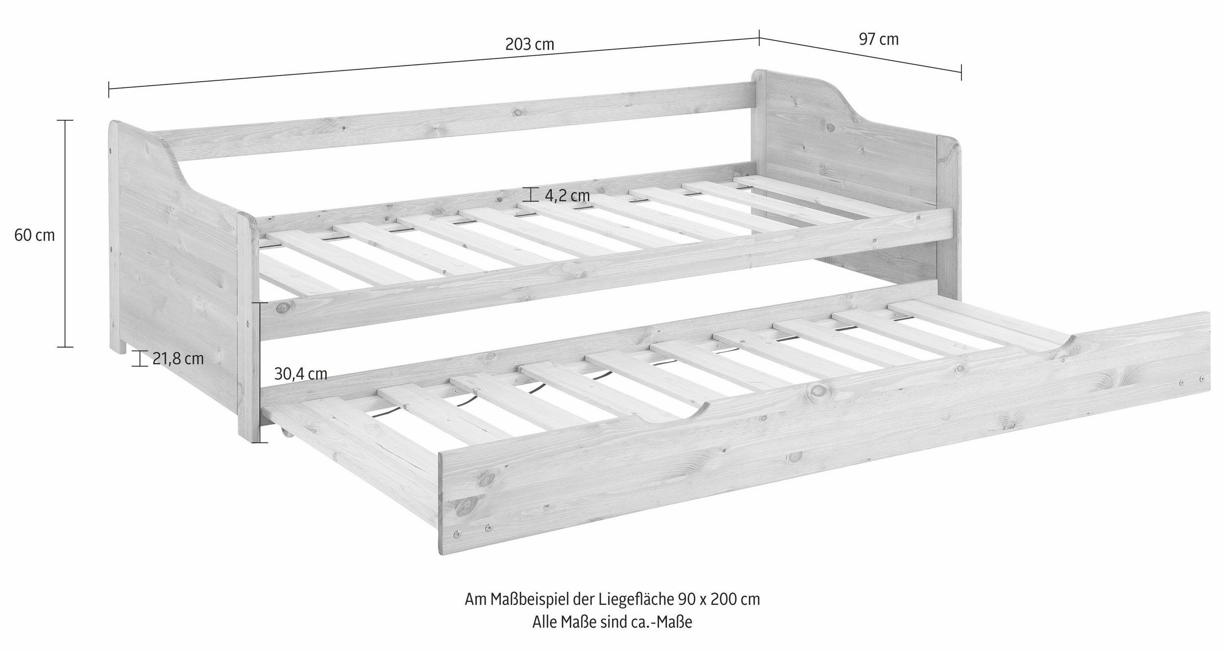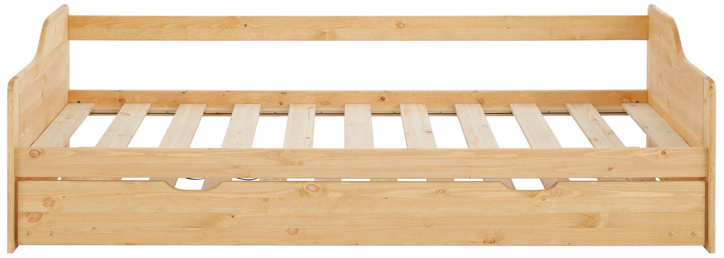 Выдвижная гостевая кровать Тим белорусского производителя "Диприз" изготовлена из массива сосны и экологически чистых отделочных материалов. Кровать является отличным решением для обустройства небольших комнат, так как позволяет значительно сэкономить место. Особенностью является выдвижной ящик, который образует дополнительное спальное место. Так же кровать оснащена настилом.