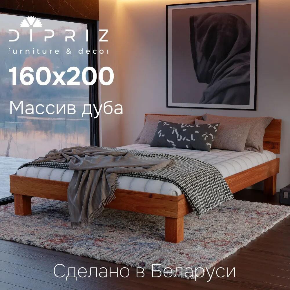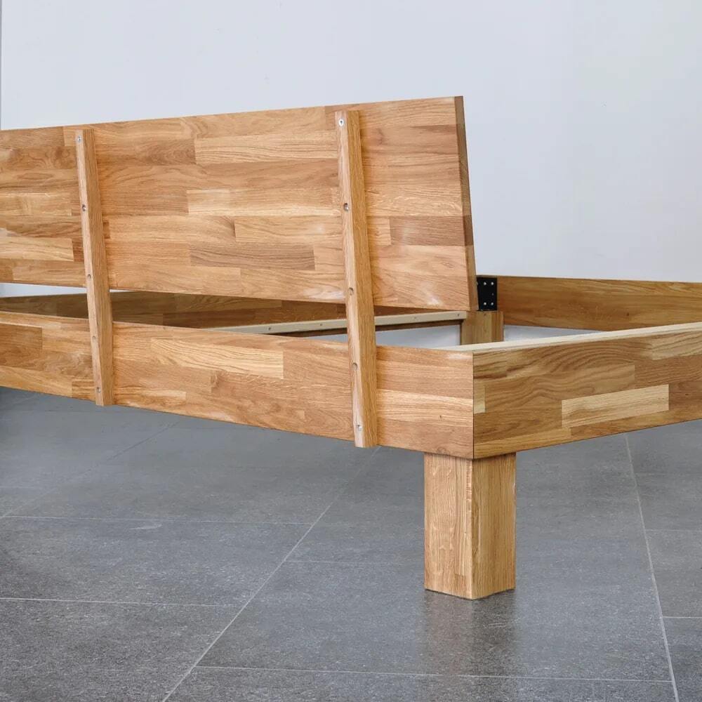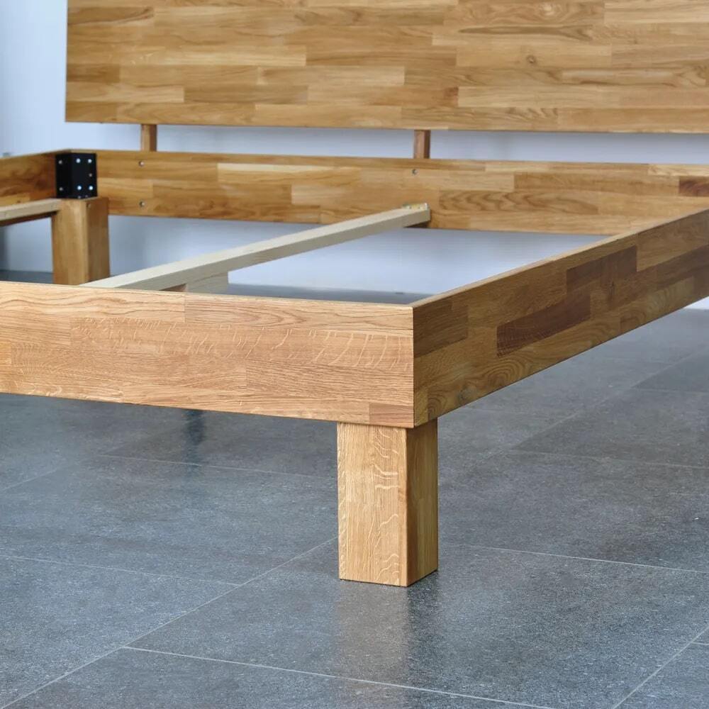 - Массив дуба премиум-класса: Кровать выполнена из цельноламельного дуба толщиной 20 мм, пропитанного натуральным маслом для долговечности и устойчивости к повреждениям.