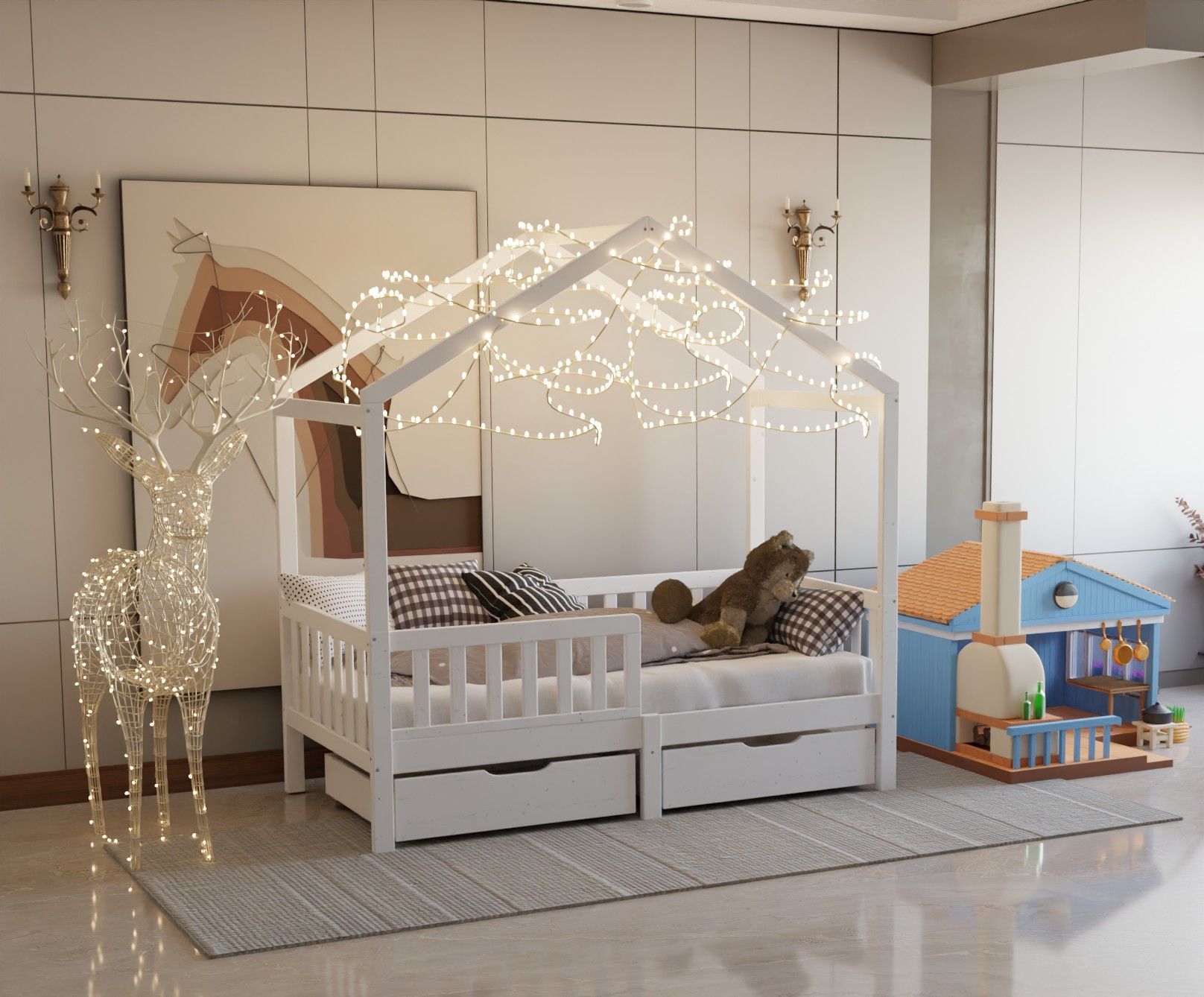 Кровать детская Фиона - прекрасный дополнение для любой комнаты. Будь то спальня или гостевой домик, вам понравиться сказочная односпальная кровать из массива сосны. В производстве использовались только экологически чистые отделочные материалы, что гарантирует полную безопасность. Кровать 160х80 Фиона в скандинавском стиле - безопасный вариант, поскольку с четырех сторон устанавливаются бортики безопасности от падения во время сна. Передний бортик можно установить как на правый бок, так и на левый, что позволит адаптировать кровать под интерьер вашей комнаты. Кровать-софа Фиона - современная кровать трансформер, которую легко адаптировать под необходимое пространство. Защитные боковые стенки кровати легко снимаются и кровать-софа превращается в обычную односпальную кровать. Для этого нужно всего лишь заменить заднюю центральную ножку на более короткую, которая идет в комплекте. Если Вам захочется кровать-домик, то не придется покупать новую кровать! В нашей коллекции есть надстройка к кровати, которая превратит кровать Фиону в кровать домик. Надстройка из массива сосны сделает кровать еще более уютной и интересной.