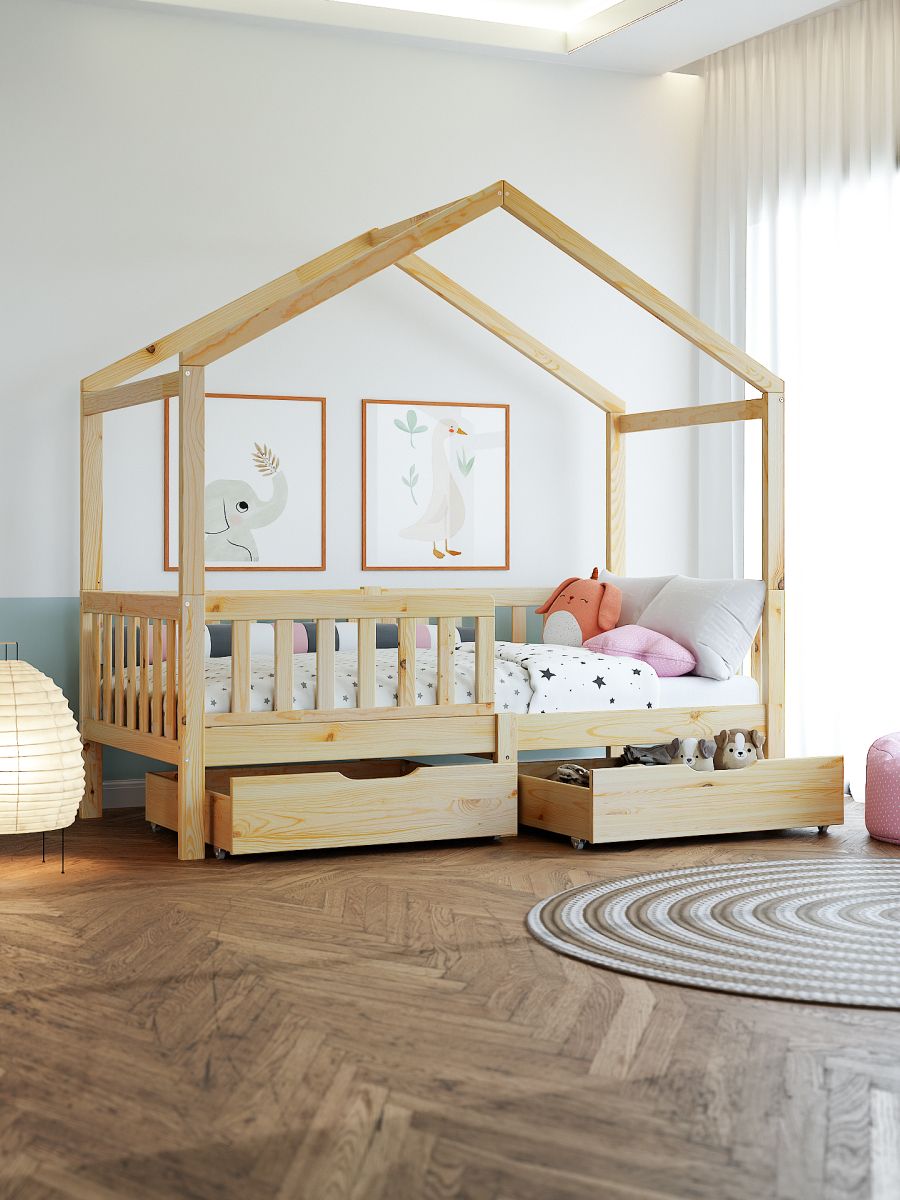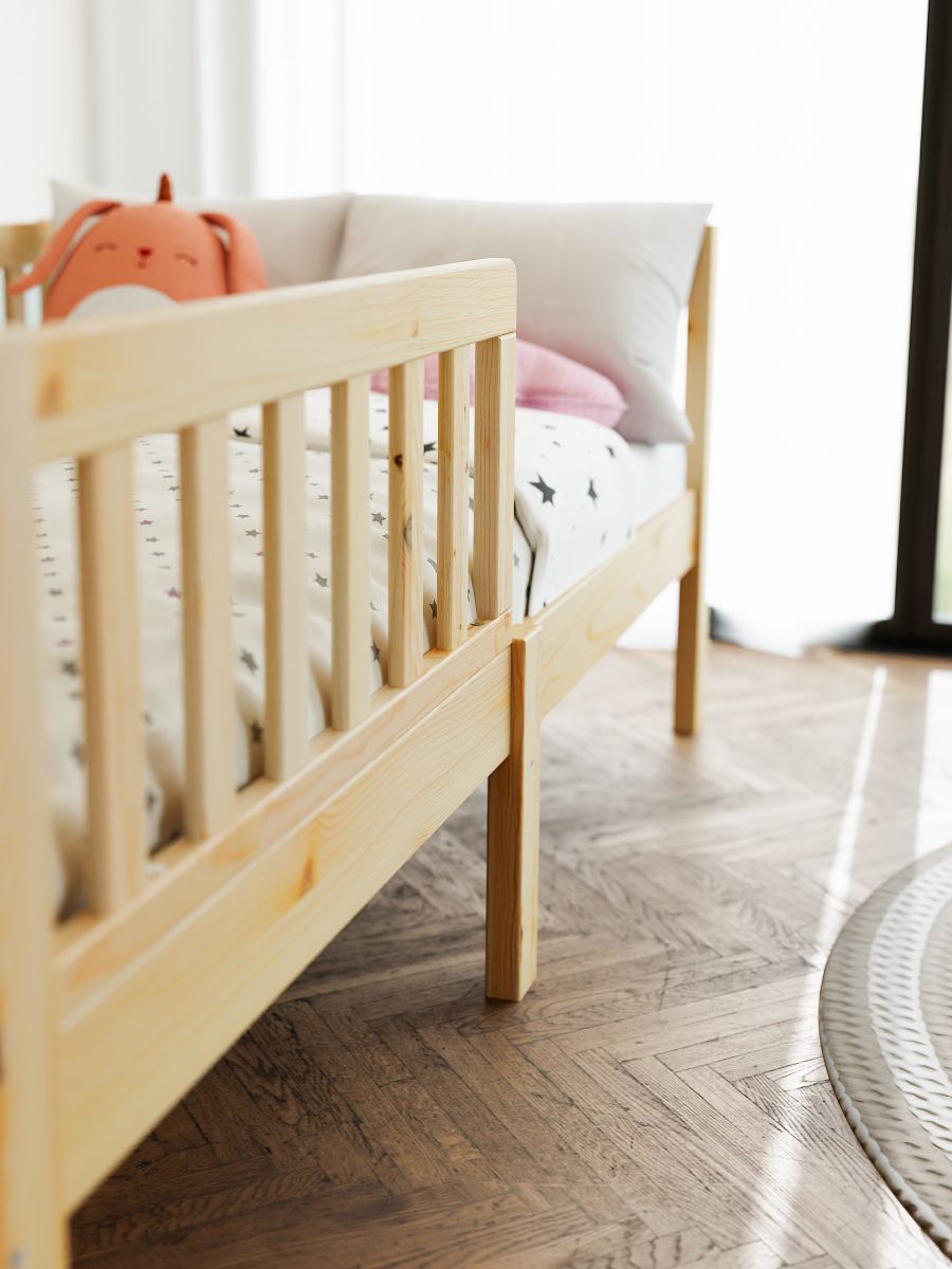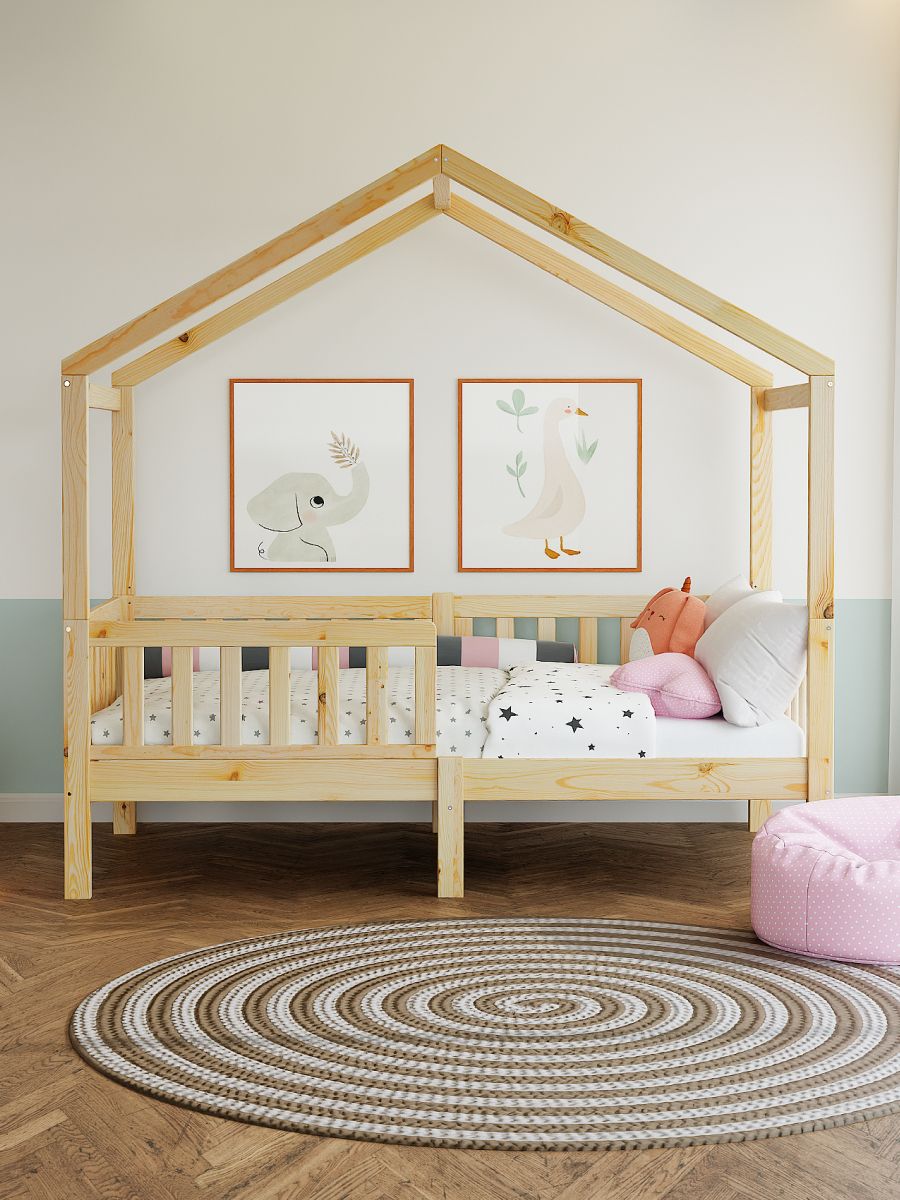 Кровать детская Фиона - прекрасный дополнение для любой комнаты. Будь то спальня или гостевой домик, вам понравиться сказочная односпальная кровать из натурального дерева - массива сосны. В производстве использовались только экологически чистые отделочные материалы, что гарантирует полную безопасность. Кровать детская 160х80 см в скандинавском стиле - безопасный вариант, поскольку с четырех сторон устанавливаются бортики безопасности от падения во время сна. Передний бортик можно установить как на правый бок, так и на левый, что позволит адаптировать кровать под интерьер вашей комнаты. Кровать-софа Фиона - современная детская кровать, которую легко адаптировать под необходимое пространство. Защитные боковые стенки кровати легко снимаются и кровать-софа превращается в красивую односпальную кровать. Для этого нужно всего лишь заменить заднюю центральную ножку на более короткую, которая идет в комплекте. Если Вам захочется кровать-домик, то не придется покупать новую кровать! В нашей коллекции есть надстройка к кровати, которая превратит кровать Фиону в кровать домик. Надстройка из массива сосны сделает кровать еще более уютной и интересной. Более того, домик можно украсить фонариками или другим декором, чтобы создать ощущение праздника в комнате.