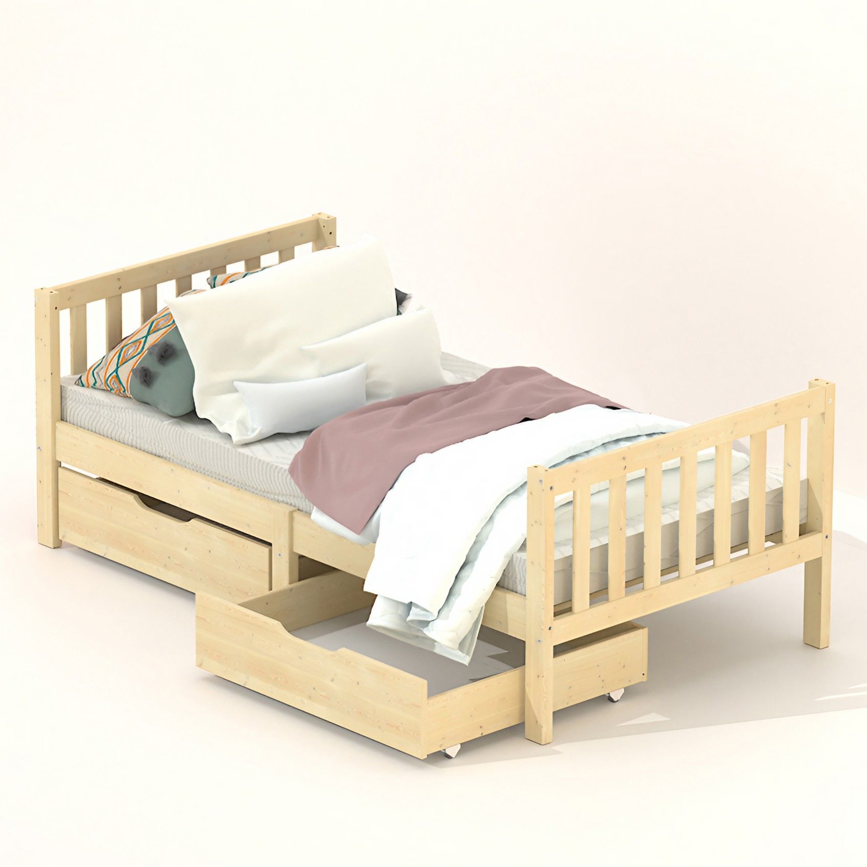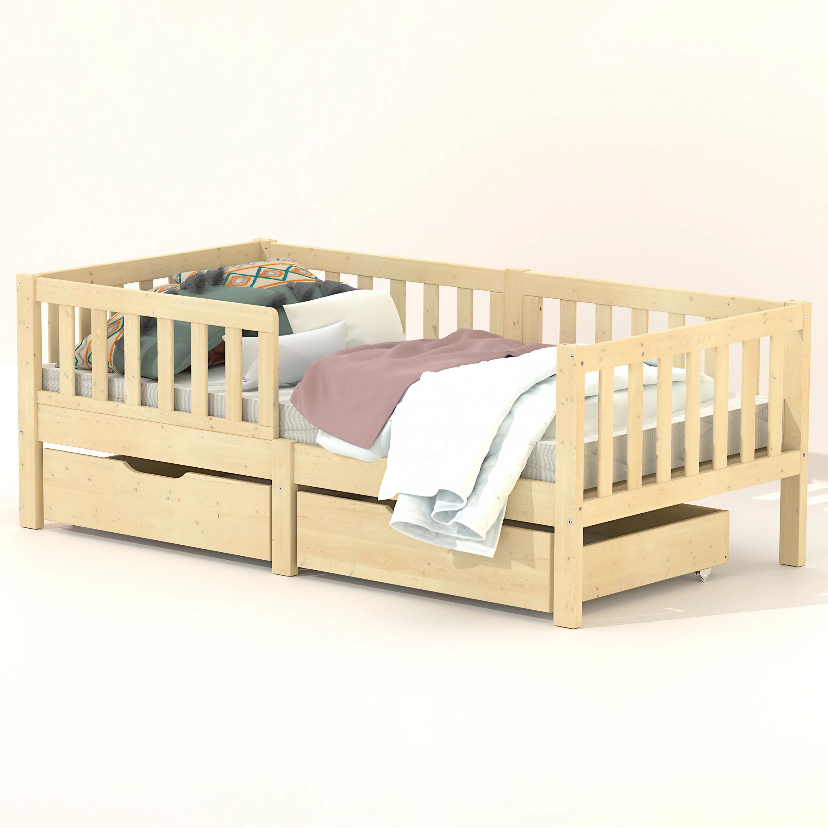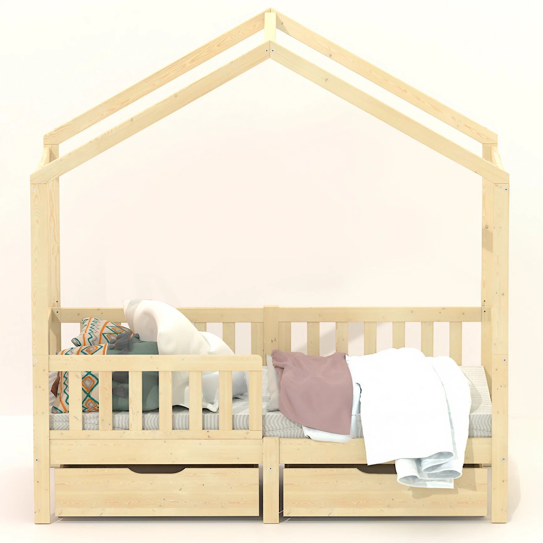 Кровать детская Фиона - прекрасный дополнение для любой комнаты. Будь то спальня или гостевой домик, вам понравиться сказочная односпальная кровать из натурального дерева - массива сосны. В производстве использовались только экологически чистые отделочные материалы, что гарантирует полную безопасность. Кровать детская 160х80 см в скандинавском стиле - безопасный вариант, поскольку с четырех сторон устанавливаются бортики безопасности от падения во время сна. Передний бортик можно установить как на правый бок, так и на левый, что позволит адаптировать кровать под интерьер вашей комнаты. Кровать-софа Фиона - современная детская кровать, которую легко адаптировать под необходимое пространство. Защитные боковые стенки кровати легко снимаются и кровать-софа превращается в красивую односпальную кровать. Для этого нужно всего лишь заменить заднюю центральную ножку на более короткую, которая идет в комплекте. Если Вам захочется кровать-домик, то не придется покупать новую кровать! В нашей коллекции есть надстройка к кровати, которая превратит кровать Фиону в кровать домик. Надстройка из массива сосны сделает кровать еще более уютной и интересной. Более того, домик можно украсить фонариками или другим декором, чтобы создать ощущение праздника в комнате.