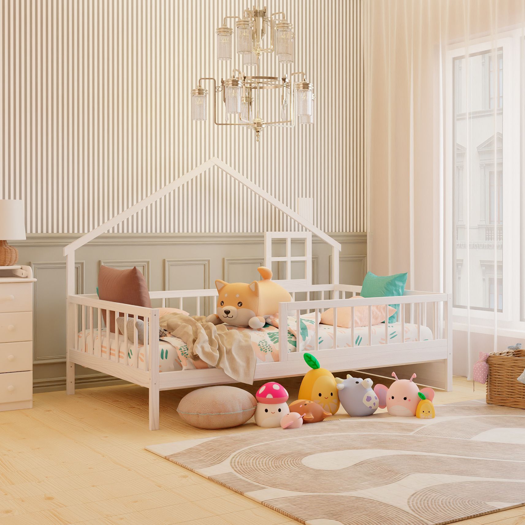 Детская кровать-домик Локи от белорусского производителя ООО "Диприз" в Скандинавском стиле в белом цвете. Кровать из массива сосны создаст уютную, творческую обстановку в комнате вашего ребенка. Уникальной особенностью кровати является наличие невысоких ножек, которые предотвращают шанс возможного травмирования. К детской кровати-домику можно дополнительно установить балдахин, оборудовать подсветкой и украсить по своему усмотрению. Кровать не имеет бортиков безопасности. Необычный дизайн и натуральные материалы позволят дополнить детскую комнату и создать приятную атмосферу. В процессе производства использовались только качественные безопасные материалы и покрытия. Благодаря своей конструкции кровать прочная, не скрипит, и легко выдерживает даже взрослого человека. Размер спального места – 120х200. Кровать изготовлена из натуральной древесины - массива сосны, она не не пахнет краской, а наполняет помещение тонким и приятным ароматом хвойного дерева. Максимально допустимая нагрузка 150 кг на одно спальное место позволяет использовать ее как детскую и подростковую кровать домик, также в качестве односпальной кровати для взрослых. Габаритные размеры кровати - (ШxВxГ): 127x150x199 см, сечение ног 5x5 см, высота боковой царги 12 см, расстояние от пола до низа боковой царги - 6 см.
