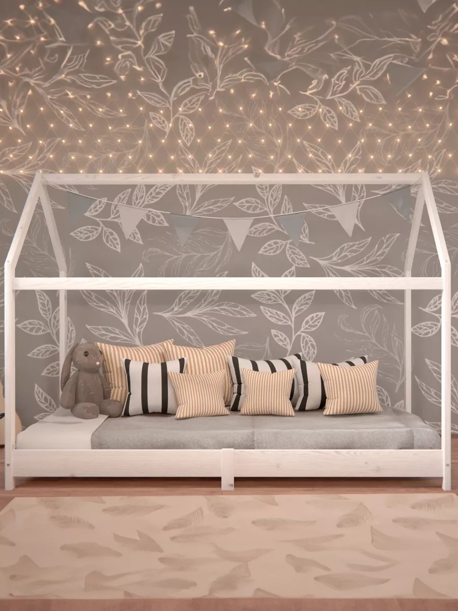Детская кровать-домик от белорусского производителя ООО "Диприз" в Скандинавском стиле в белом цвете. Кровать из массива сосны создаст уютную, творческую обстановку в комнате вашего ребенка. Уникальной особенностью кровати является наличие невысоких ножек, которые предотвращают шанс возможного травмирования. К детской кровати-домику можно дополнительно установить балдахин, оборудовать подсветкой и украсить по своему усмотрению. Кровать не имеет бортиков безопасности. Необычный дизайн и натуральные материалы позволят дополнить детскую комнату и создать приятную атмосферу. В процессе производства использовались только качественные безопасные материалы и покрытия. Благодаря своей конструкции кровать прочная, не скрипит, и легко выдерживает даже взрослого человека. Размер спального места – 90х190. Кровать изготовлена из натуральной древесины - массива сосны, она не не пахнет краской, а наполняет помещение тонким и приятным ароматом хвойного дерева. Максимально допустимая нагрузка 100 кг на одно спальное место позволяет использовать ее как детскую и подростковую кровать домик, также в качестве односпальной кровати для взрослых. Кровать представлена в нескольких вариантах отделки – без отделки (натуральный) (SKU: 1379706324), в натуральном лаке (SKU: 1379671637) или с покрытием белым воском (SKU: 1379703107). Габаритные размеры кровати - (ШxВxГ): 97x150x199 см, сечение ног 5x5 см, высота боковой царги 12 см, расстояние от пола до низа боковой царги - 6 см.