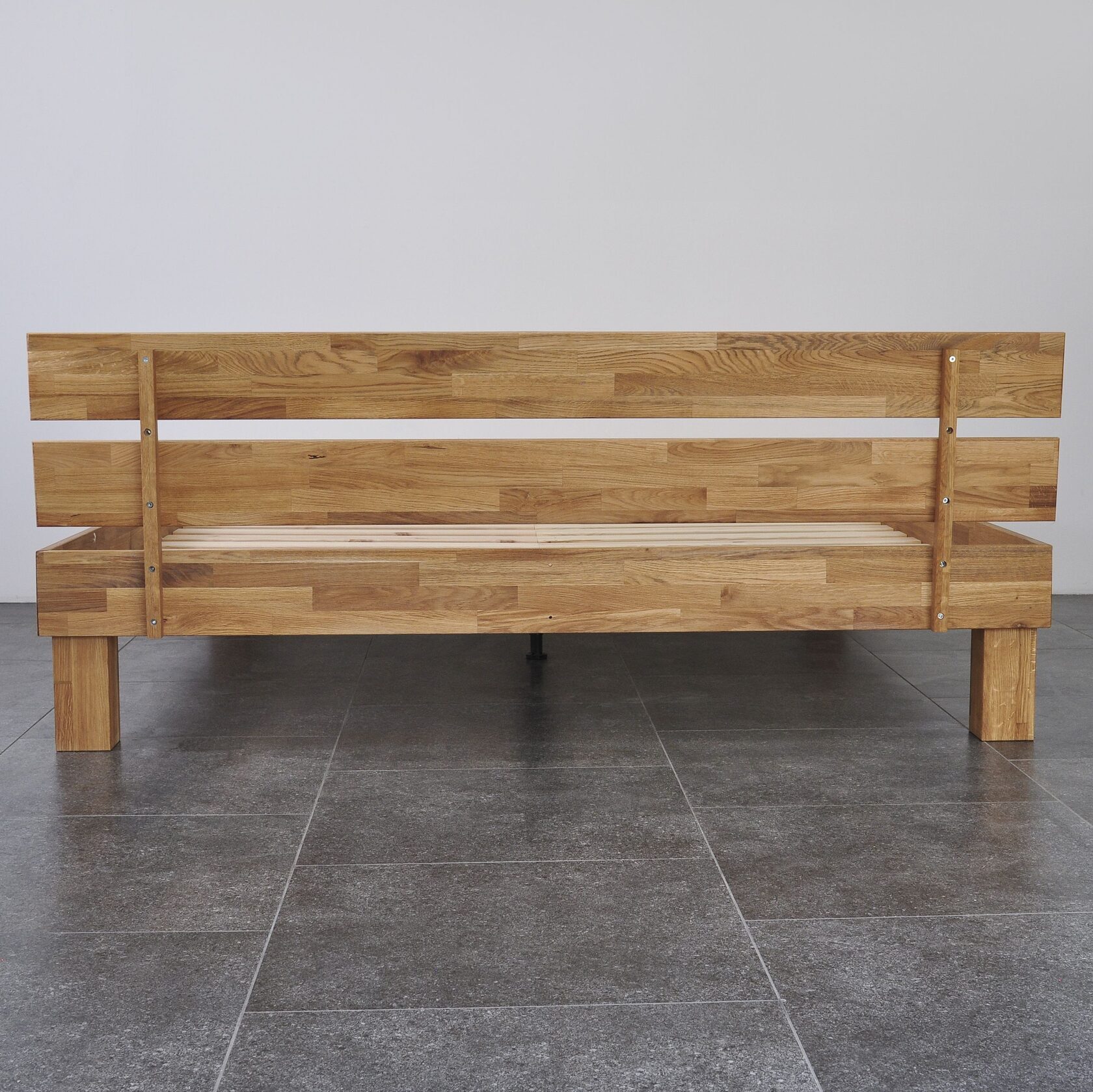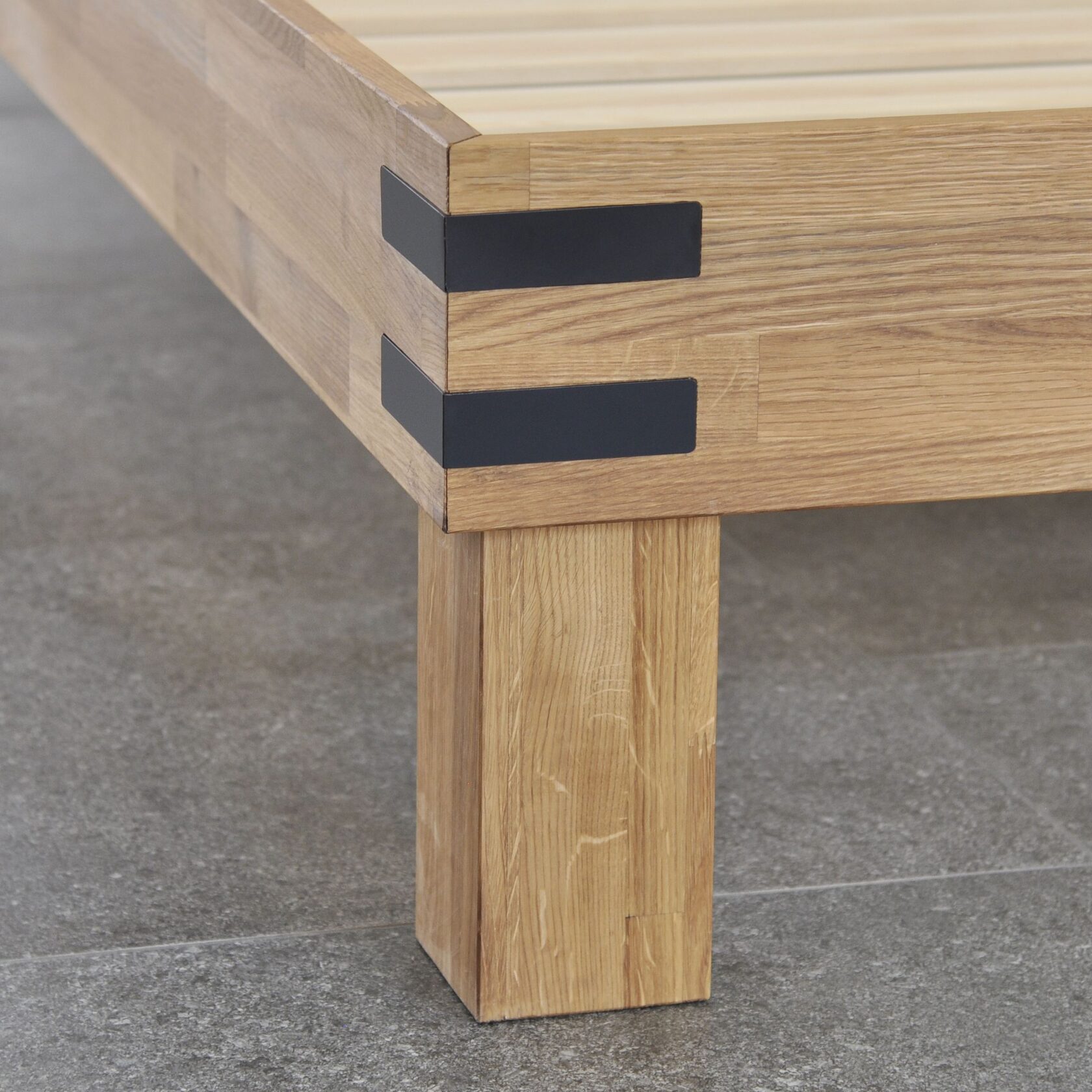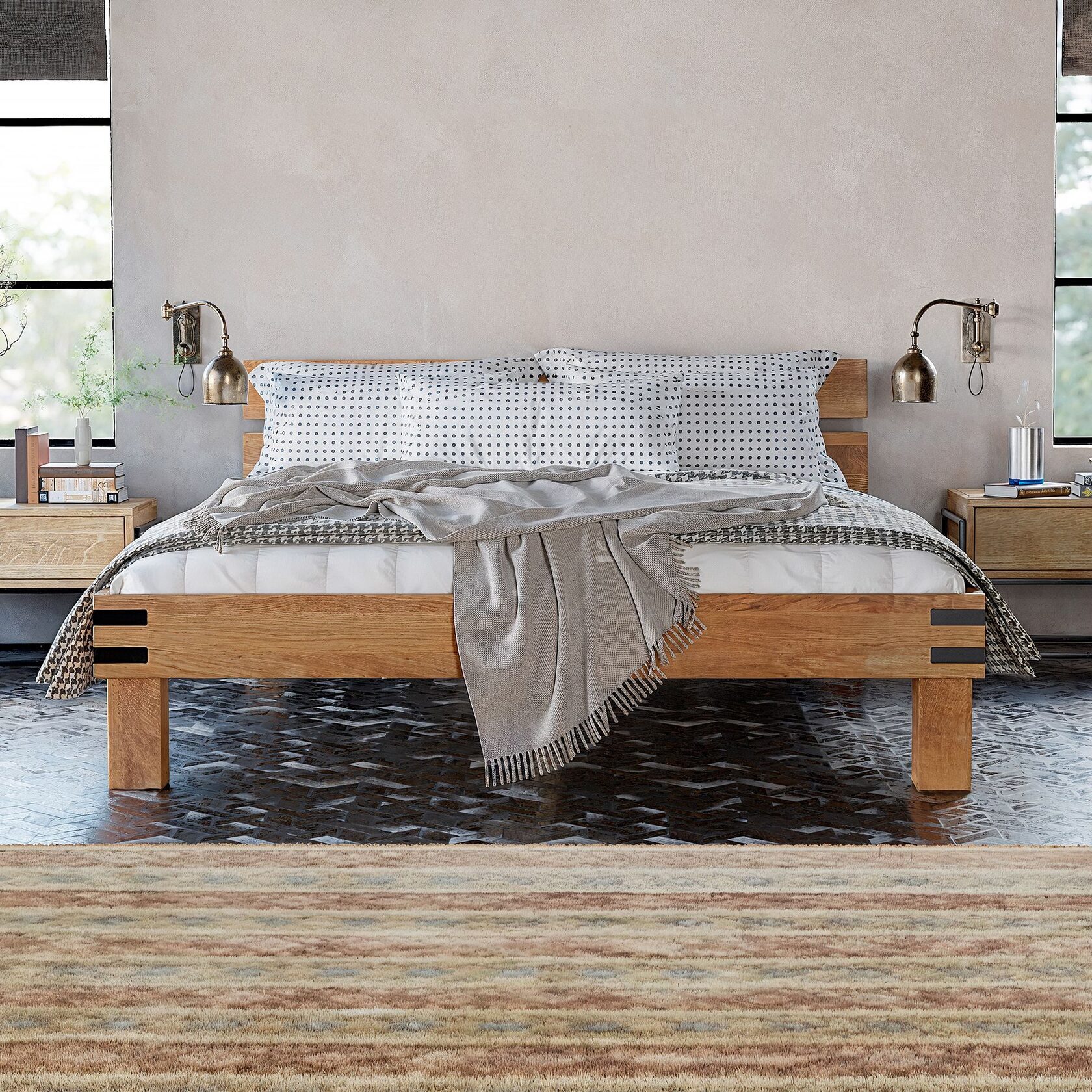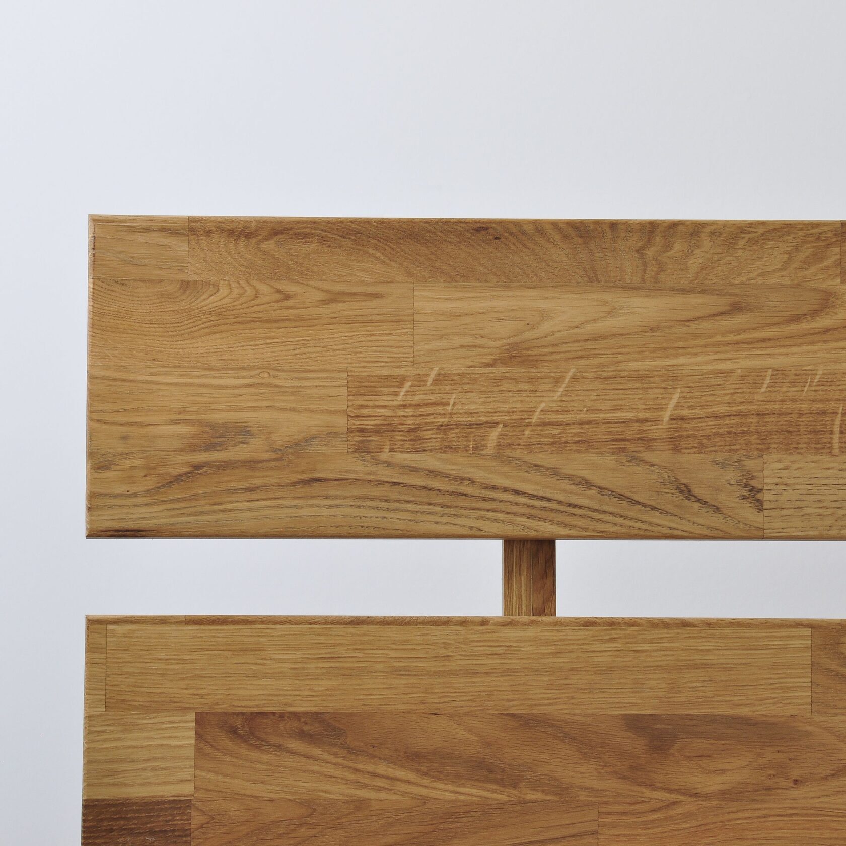 - Массив дуба премиум-класса: Кровать выполнена из цельноламельного дуба толщиной 20 мм, пропитанного натуральным маслом для долговечности и устойчивости к повреждениям.