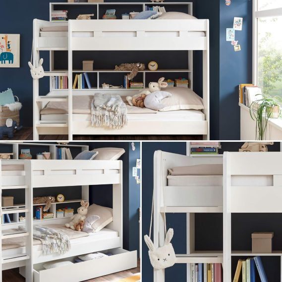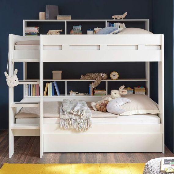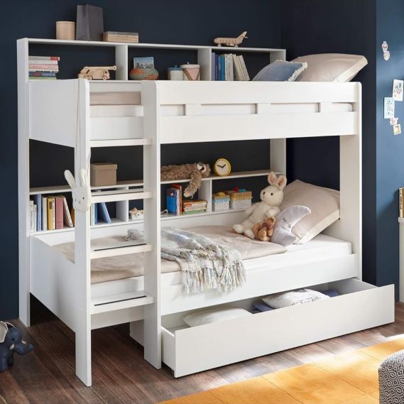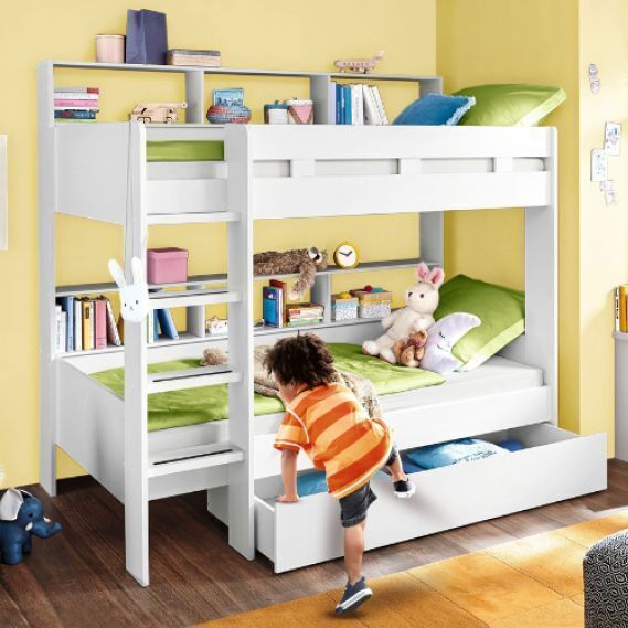 Много места для хранения – эта кровать обеспечивает порядок в спальне. Она предлагает полки, чтобы книги и игрушки можно было удобно хранить. В выдвижном ящике для кровати удобно хранить пастельное белье, подушки и одеяла.