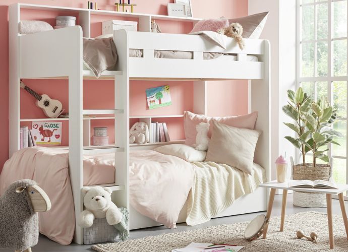 Чудо экономии места – с двумя спальными местами 90 x 200 см кровать предлагает достаточно места для сна и отдыха для 2 человек. Экономия места и функциональная двухъярусная кровать в ограниченном пространстве.