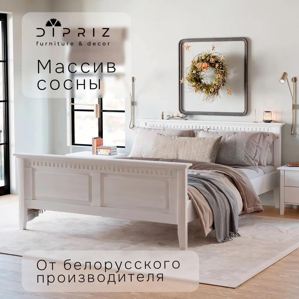 Просторная и прочная двуспальная кровать Боцен от белорусского производителя ООО "Диприз" выполнена из натурального дерева - массива сосны. Размер спального места - 160х200 см. Спинки кровати украшены простой, но изящной фрезеровкой, которая удачно декорирует изделие под классический стиль. Экологически чистое белое покрытие кровати придаст ощущение опрятности и чистоты Вашей спальне. Высота кровати 88 см, спальное место расположено на высоте 38,5 см от пола. Качественная фурнитура обеспечивает надежность и долговечность конструкции, а также делает сборку кровати незатейливой. Подробная инструкция по сборке прилагается.