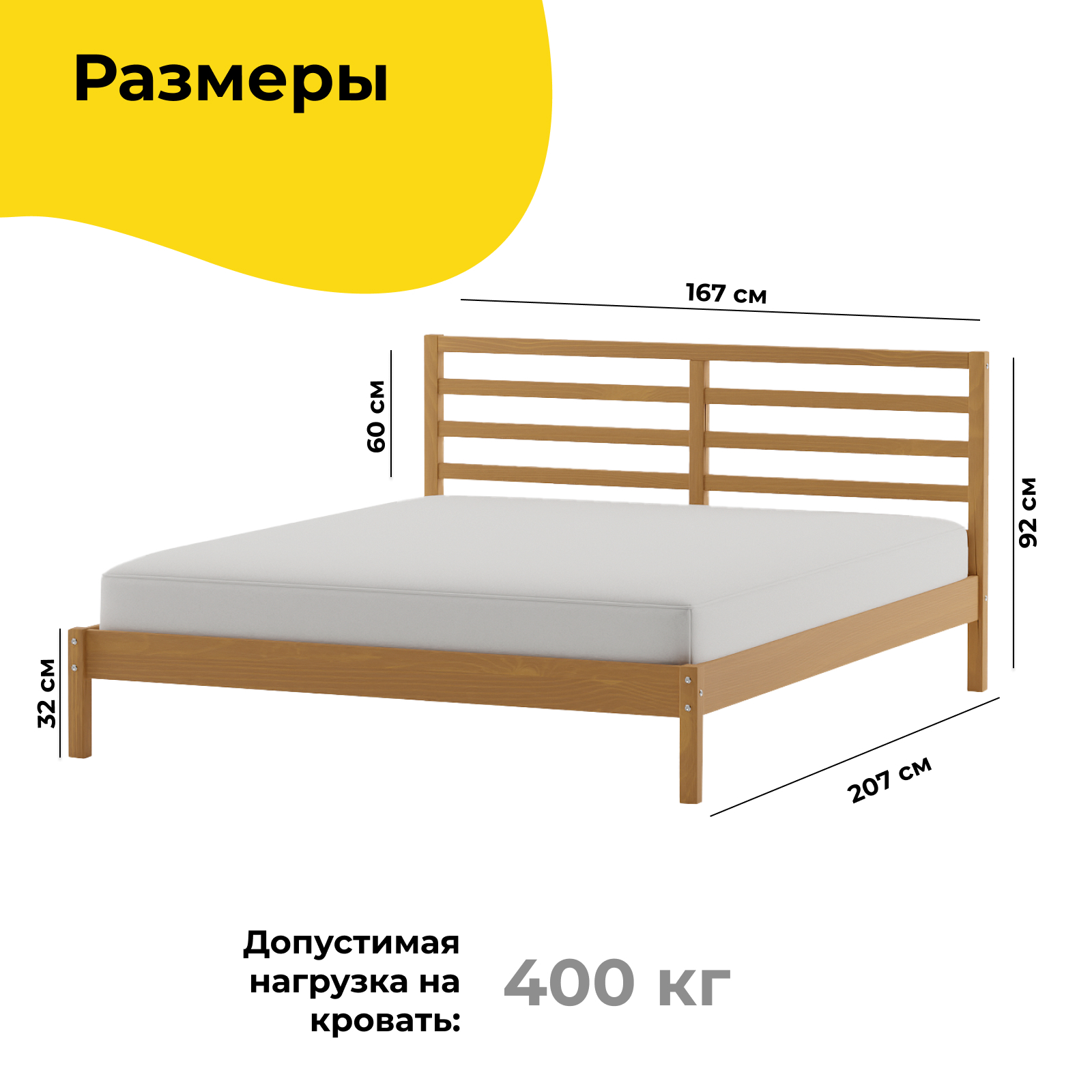 - Реечная спинка и опорная ножка: Реечная спинка и дополнительная центральная опора усиливают конструкцию, предотвращая проседание и обеспечивая дополнительную жесткость.