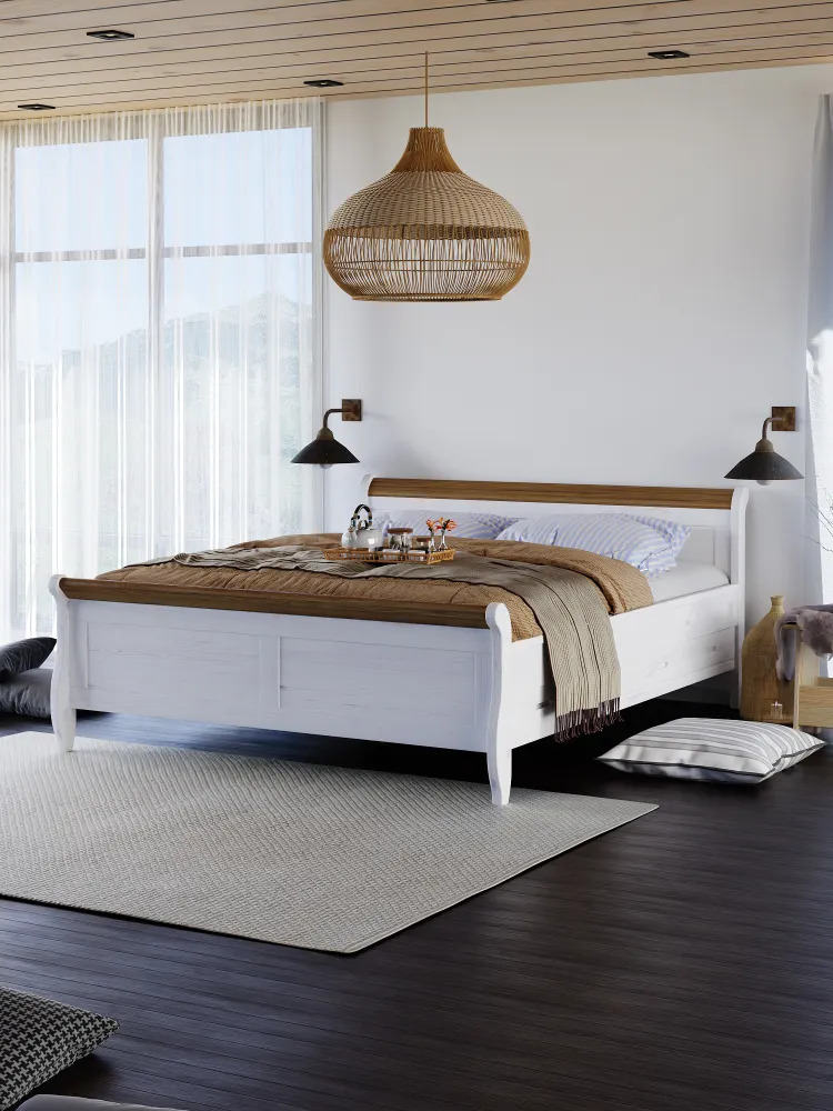 Кровать 180х200 из дерева, выполненная из массива сосны и с поручнями из массива дуба, воплощает элегантность и функциональность. Классический дизайн данной двуспальной кровати придает комнате утонченный и уютный вид. Натуральная древесина гладкие линии идеально вписываются в любой интерьер, от традиционного до современного, добавляя теплоту и натуральную эстетику