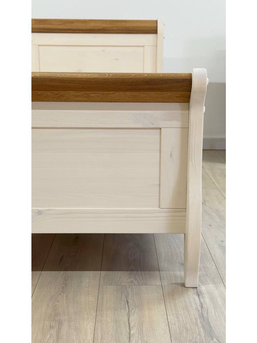 Кровать 90х200 из дерева, выполненная из массива сосны с поручнями из массива дуба, воплощает элегантность и функциональность. Классический дизайн данной кровати придает комнате утонченный и уютный вид. Натуральная древесина гладкие, закругленные линии идеально вписываются в любой интерьер, от традиционного до современного, добавляя теплоту и натуральную эстетику