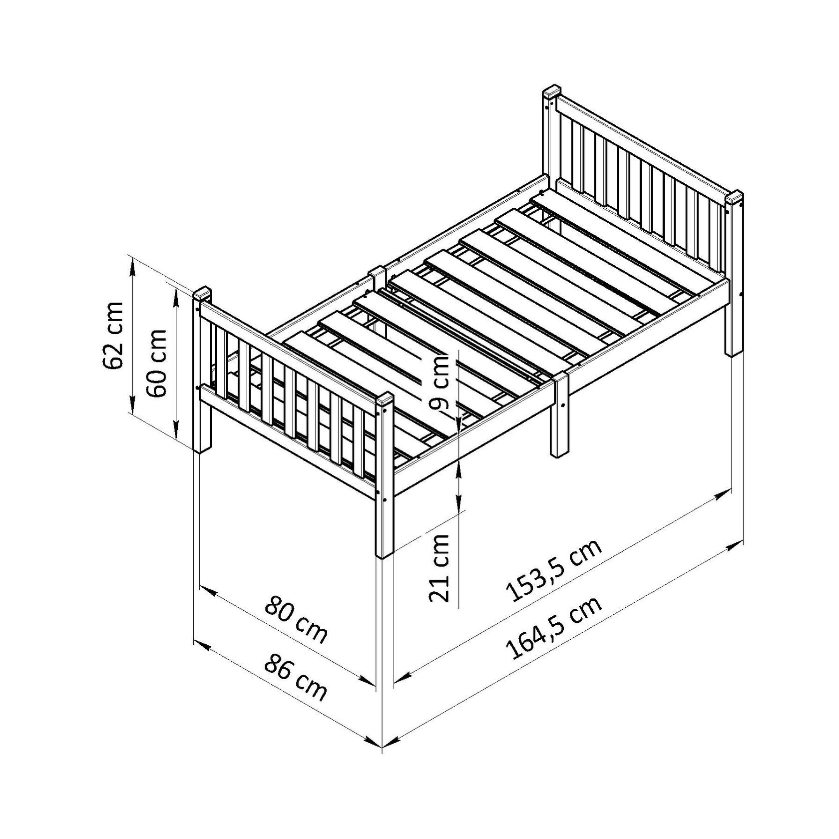 Детская односпальная кровать Фиона 160*80 см из массива сосны - прекрасный дополнение для любой комнаты. Будь то спальня или гостевой домик, вам понравиться сказочная односпальная кровать из массива сосны. В производстве использовались только экологически чистые отделочные материалы, что гарантирует полную безопасность. Кровать покрыта белым воском на водной основе, который защищает древесину от негативного внешнего воздействия. Кровать-софа в скандинавском стиле - отличный вариант для сна, поскольку с имеет удобные изголовье и изножье, которые защищают от падения во время сна. В собранном виде детская кровать займет совсем немного места, габариты кровати (Ширина х Глубина х Высота, см) - 86х164.5х62 см, что позволит разместить её в любой комнате. Для большей прочности основание кровати (настил) крепиться к кровати на шурупы. Кровать-софа Фиона - современная кровать трансформер, которую легко адаптировать под необходимое пространство. Для этого нужно всего лишь заменить заднюю центральную ножку на более короткую, которая идет в комплекте. Если Вам захочется кровать-домик, то не придется покупать новую кровать! В нашей коллекции есть надстройка к кровати, которая превратит кровать-софу в кровать домик. Надстройка из массива сосны сделает кровать еще более уютной и интересной. Более того, домик можно украсить фонариками или другим декором, чтобы создать ощущение праздника в комнате. Обращаем Ваше внимание, что надстройка приобретается отдельно. Дополнительно к кровати можно приобрести комплект из 2-х ящиков, которые создадут дополнительное место для хранения постельного белья, одежды или аксессуаров.