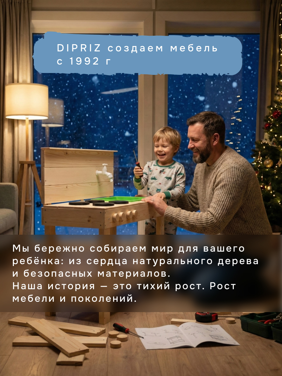 Детская игровая кухня Офелия из массива сосны отлично подойдет в качестве подарка на новый год 2024 для семьи, друзей или коллег по работе. Развивающая детская игрушка отлично подойдет в качестве новогоднего подарка или новогоднего декора для семей с подрастающими детьми.