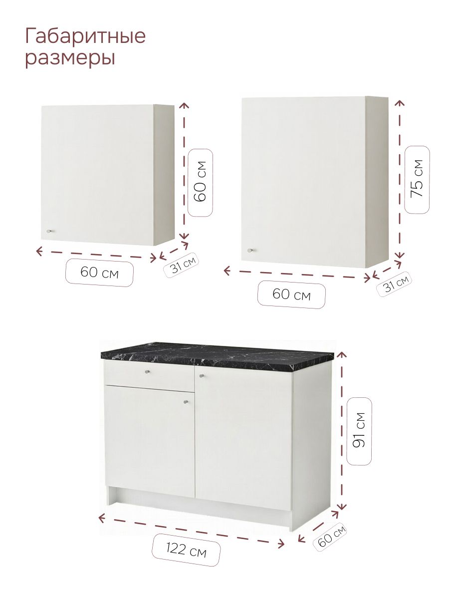 Изделия поставляются в разобранном виде с полным комплектом фурнитуры, метизов и подробной инструкцией. Благодаря продуманной конструкции и понятным схемам сборки, вы сможете самостоятельно смонтировать этот кухонный ансамбль, экономя время и бюджет на вызов специалистов.