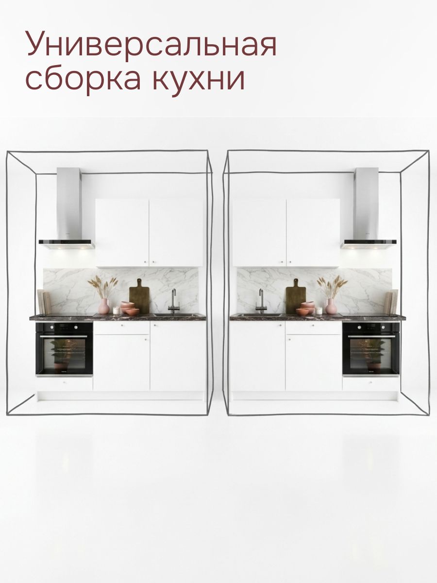 Гибкость планировки: Вы получаете готовый функциональный блок, который легко вписать в любую планировку. Навесной модуль оснащен регулируемыми петлями, позволяющими настроить направление открывания дверей, а устойчивая напольная тумба станет надежным основанием для столешницы.
