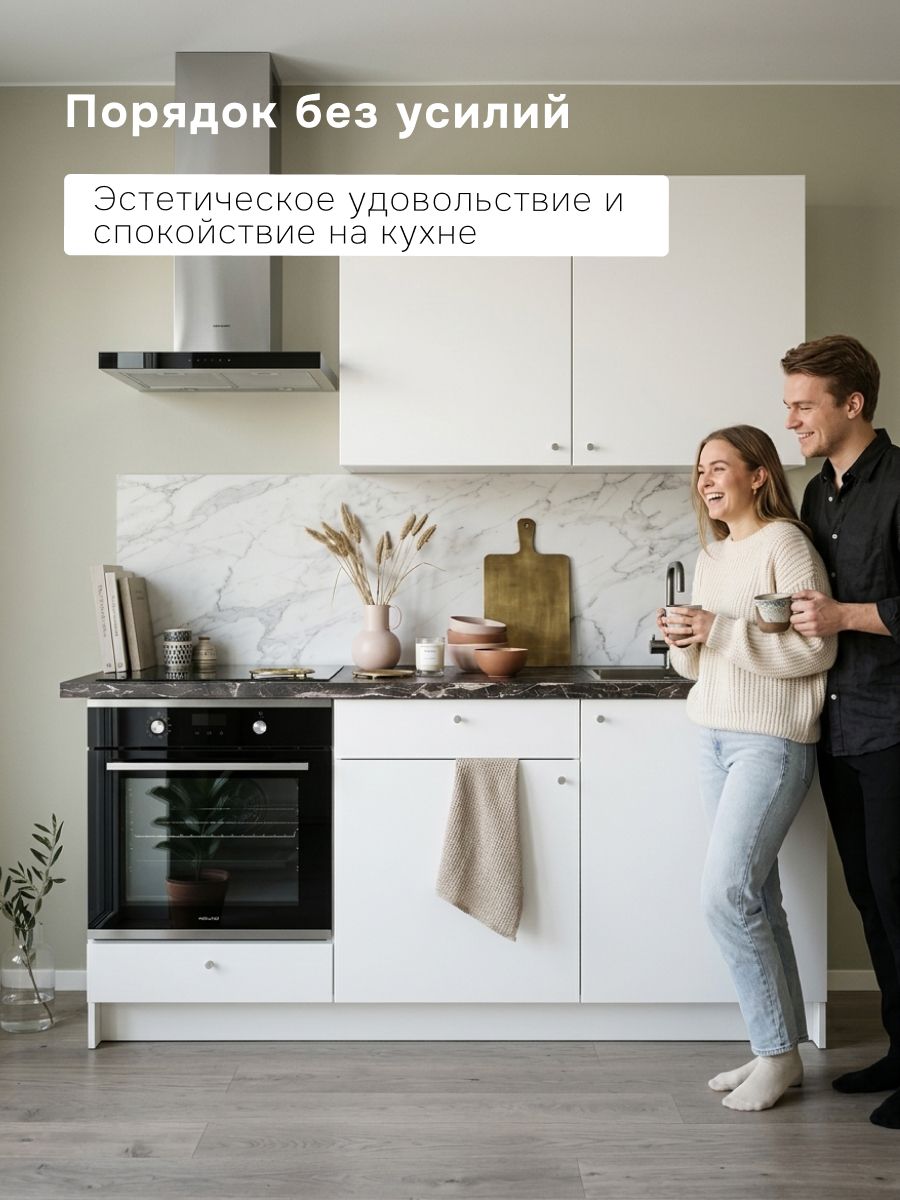 Представляем вам готовое решение для создания функциональной и стильной кухни — ансамбль «Кнок». Это комплект, состоящий из напольного модуля шириной 180 см и навесного шкафа шириной 120 см, объединенных общей эстетикой скандинавского минимализма и философией продуманного хранения. Это не просто два шкафа, а сбалансированный тандем, который станет основой вашего кухонного гарнитура.