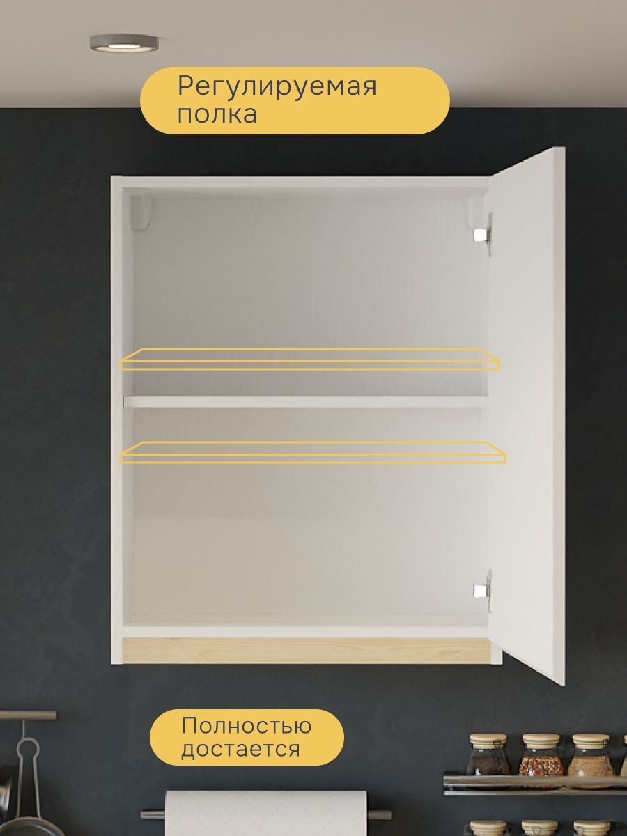 Модуль выполнен из безопасного ЛДСП (класс эмиссии Е1) с вставками из массива сосны, покрытыми белесым лаком — придаёт кухне свежесть и уют. Регулируемая полка, доводчик на дверце и отверстие под сушку создают максимум комфорта. Все крепления и фурнитура в комплекте.